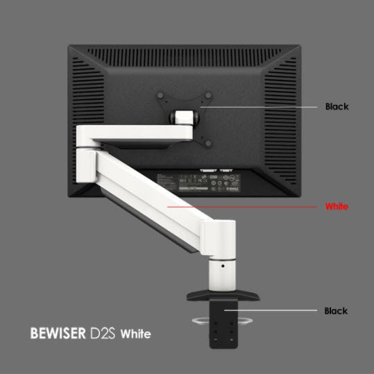BEWISER D2S สีขาว ขาตั้งคอม จอมอนิเตอร์VESA 15"-49" Max10kg/16kg แขนอลูมินั่มแก๊สสปริงโยกหมุนอิสระ Monitor Gas-arm stand