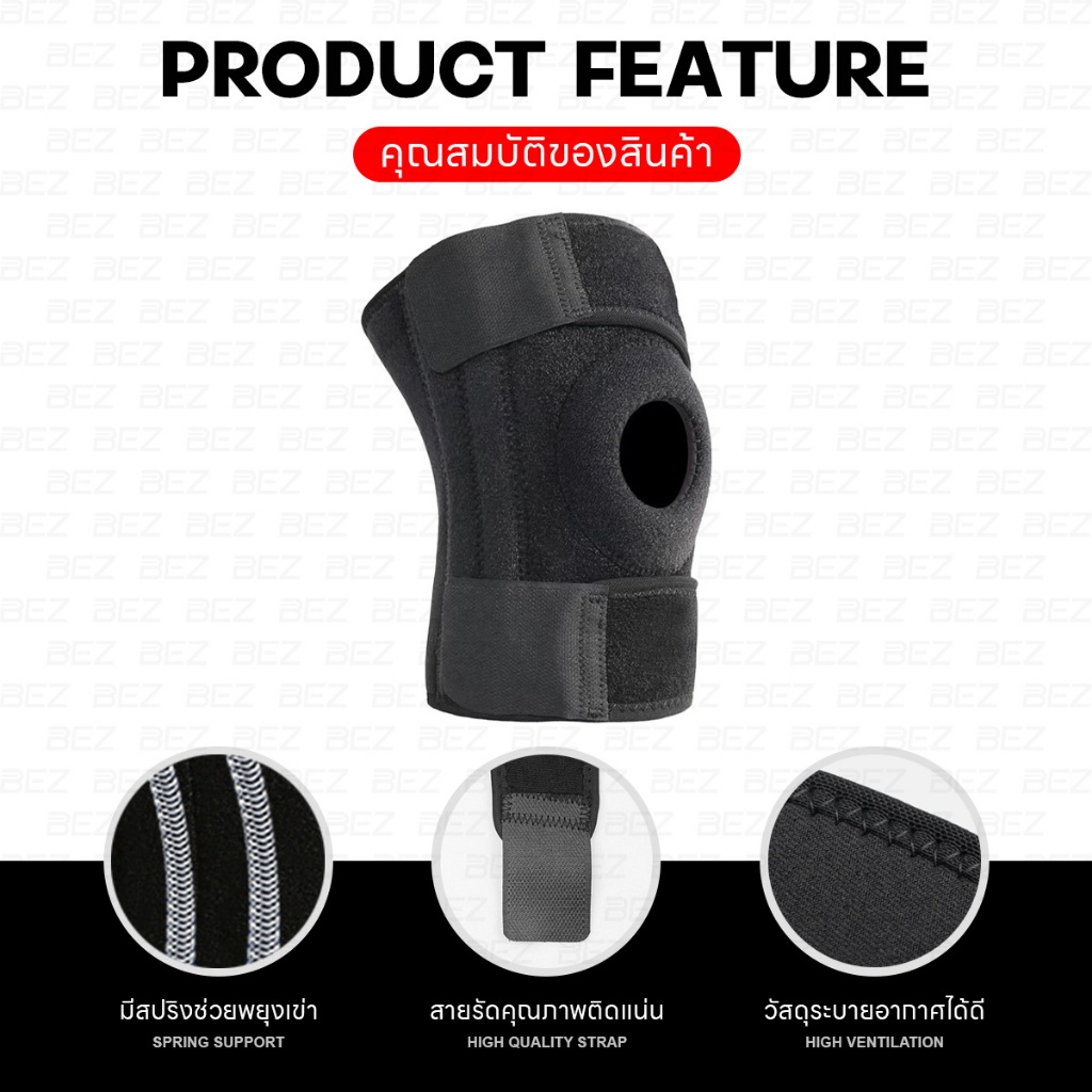 BEZ ที่รัดเข่า สายรัดพยุงเข่า สนับเข่า เสริมสปริง มีสปริงช่วยพยุงเข่า ระบายอากาศดี ป้องกันอาการปวด