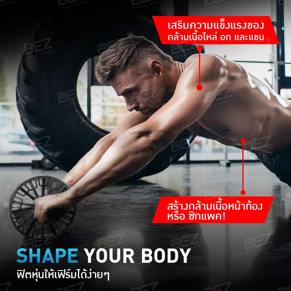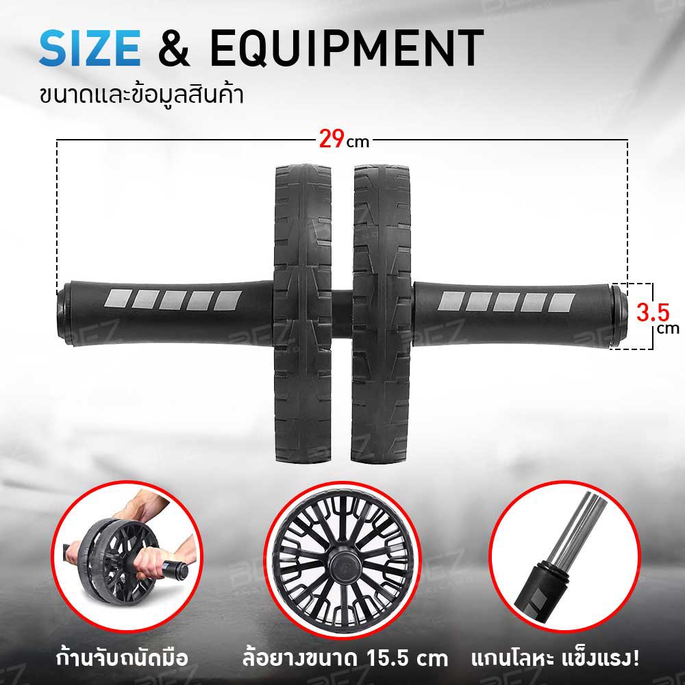 BEZ ลูกกลิ้งบริหารหน้าท้อง ออกกำลังกาย หน้าท้อง abs roller ฟรี! แผ่นรองเข่า AB Wheel 15.5 cm