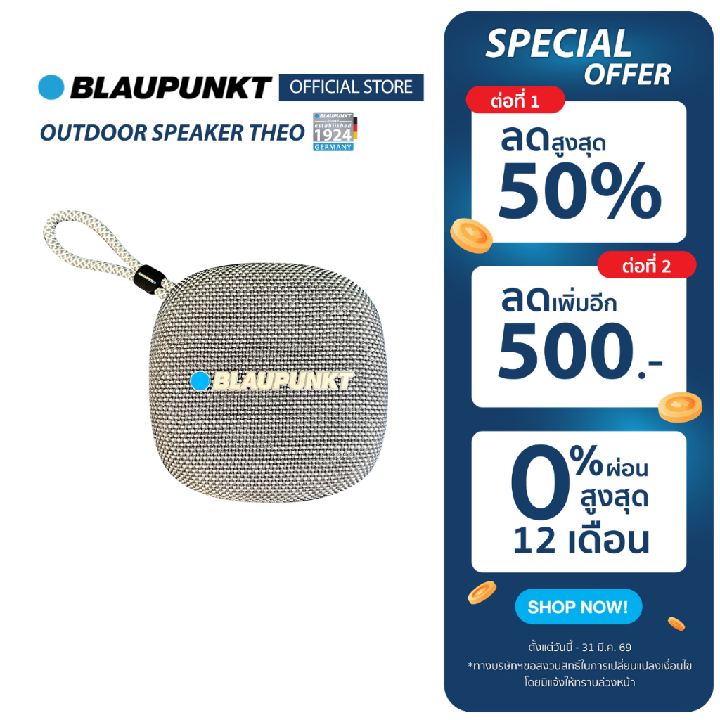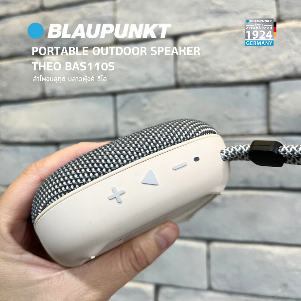 BLAUPUNKT ลำโพงบลูทูธกันน้ำ IPX6 Bluetooth 5.3 กำลังขับ 10 วัตต์ แบตเตอรี่ 2600mAh รุ่น THEO