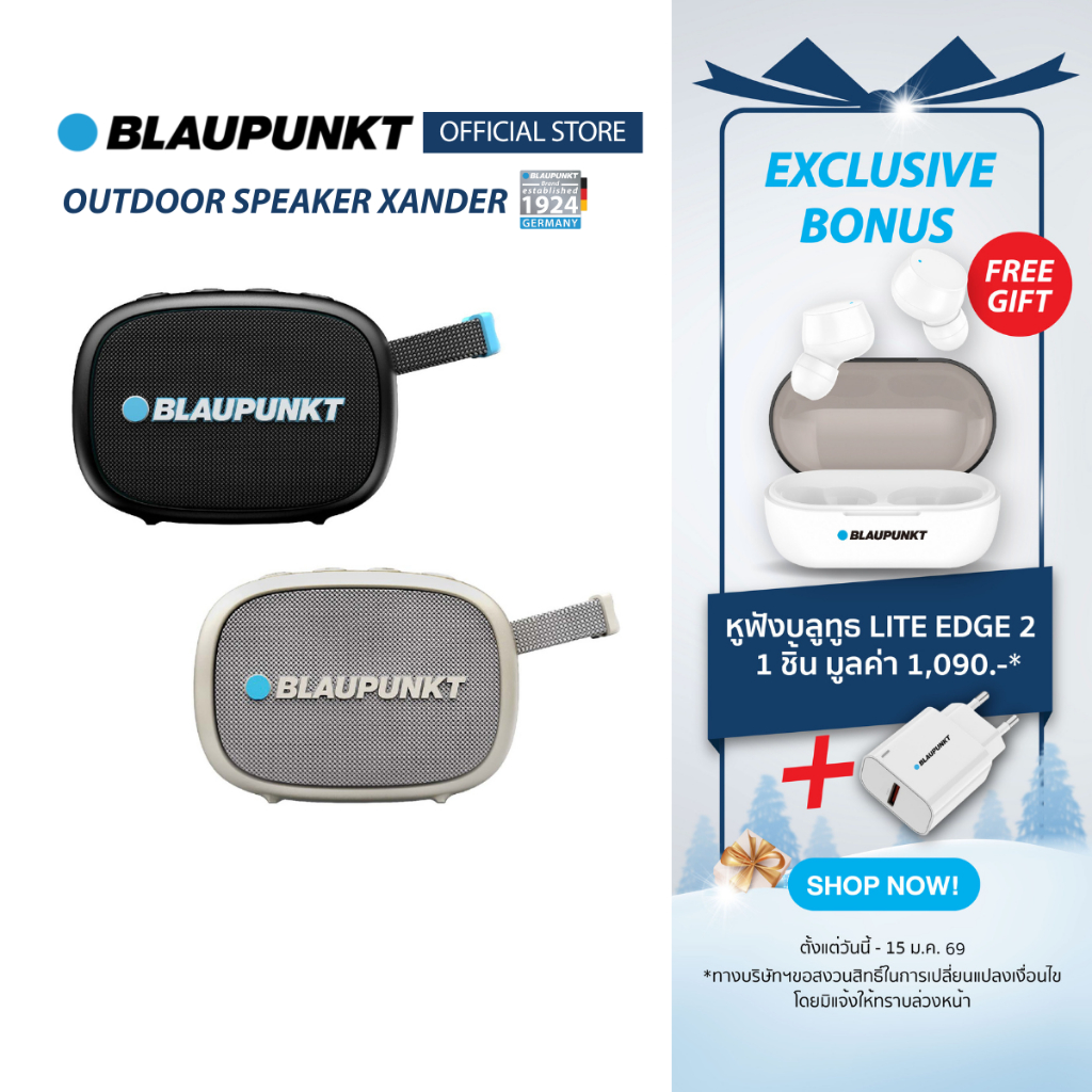 BLAUPUNKT ลำโพงบลูทูธพกพาง่าย 5 วัตต์ Bluetooth 5.3 กั นน้ำ IPX6 แบตเตอรี่ 1400mAh รุ่น XANDER
