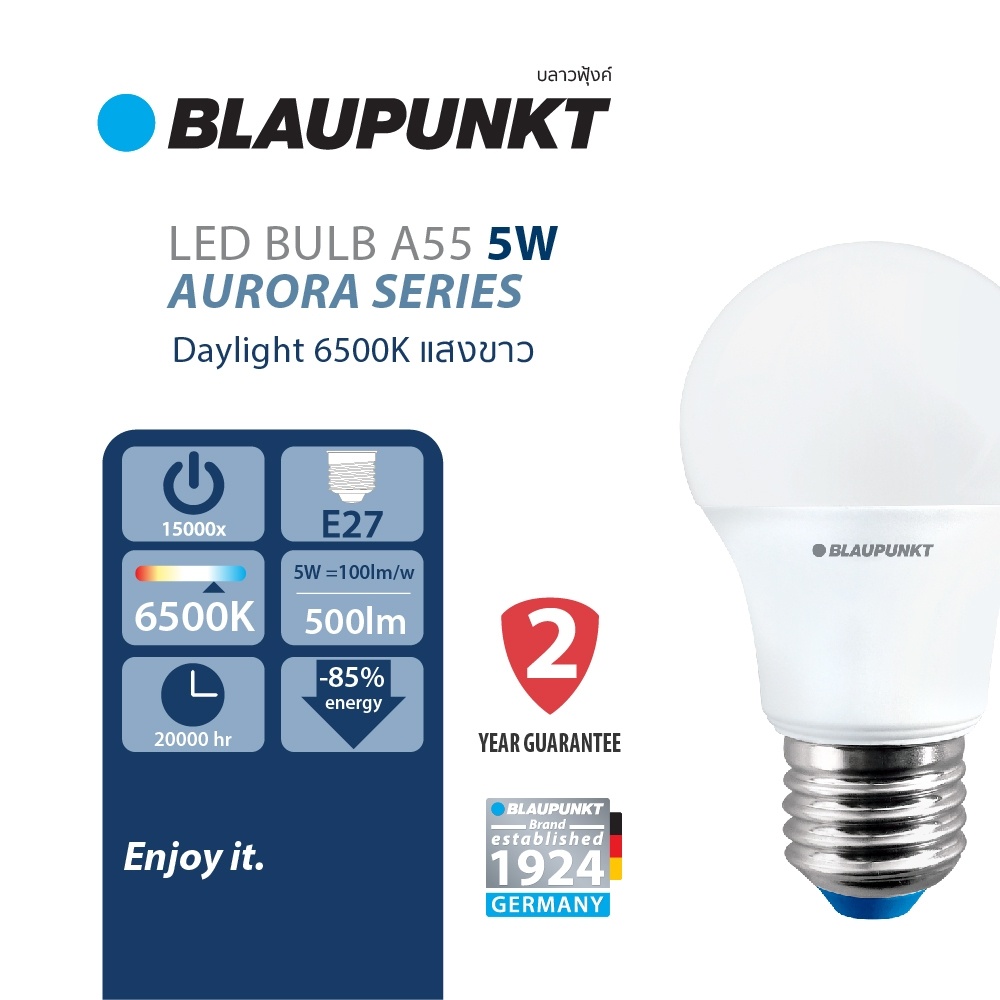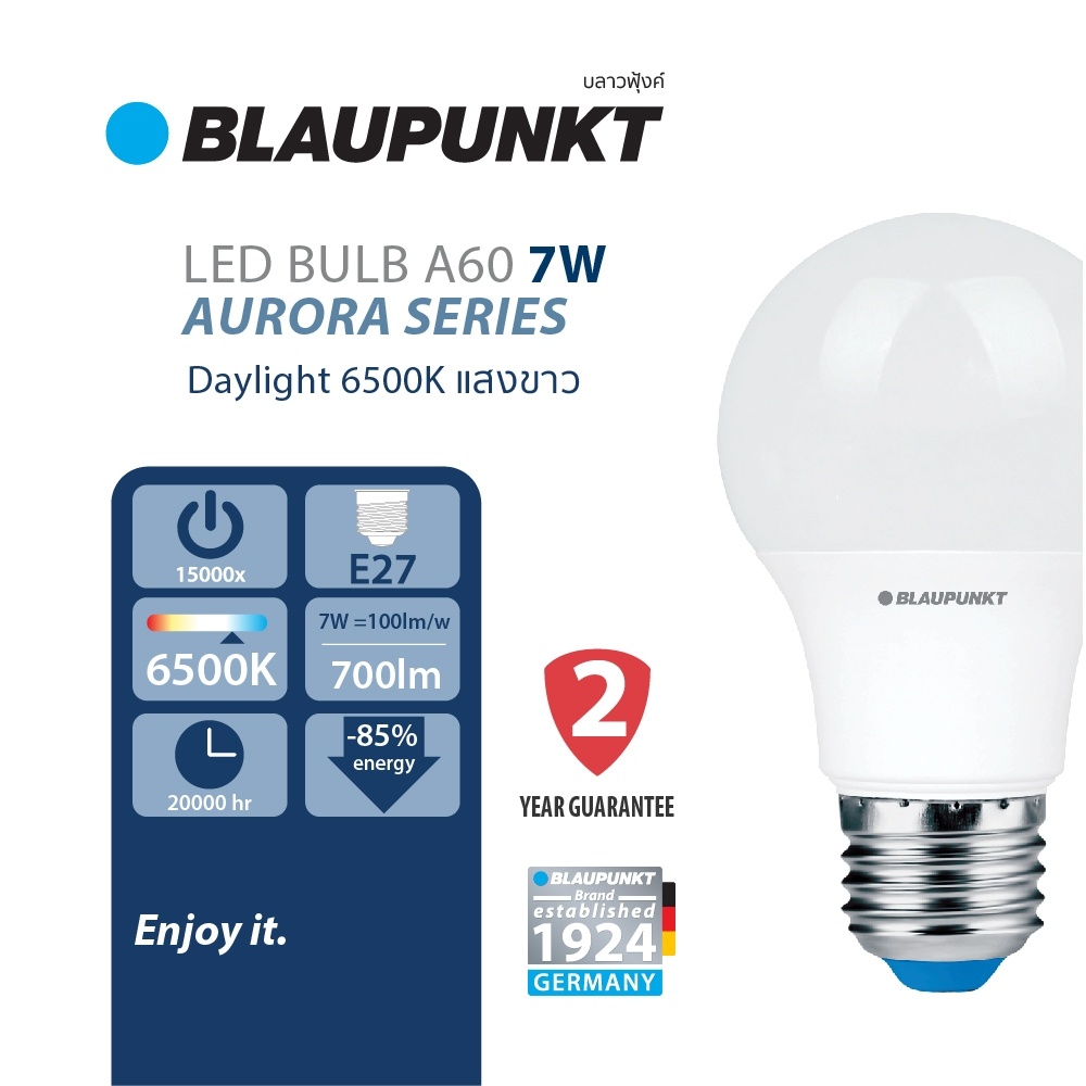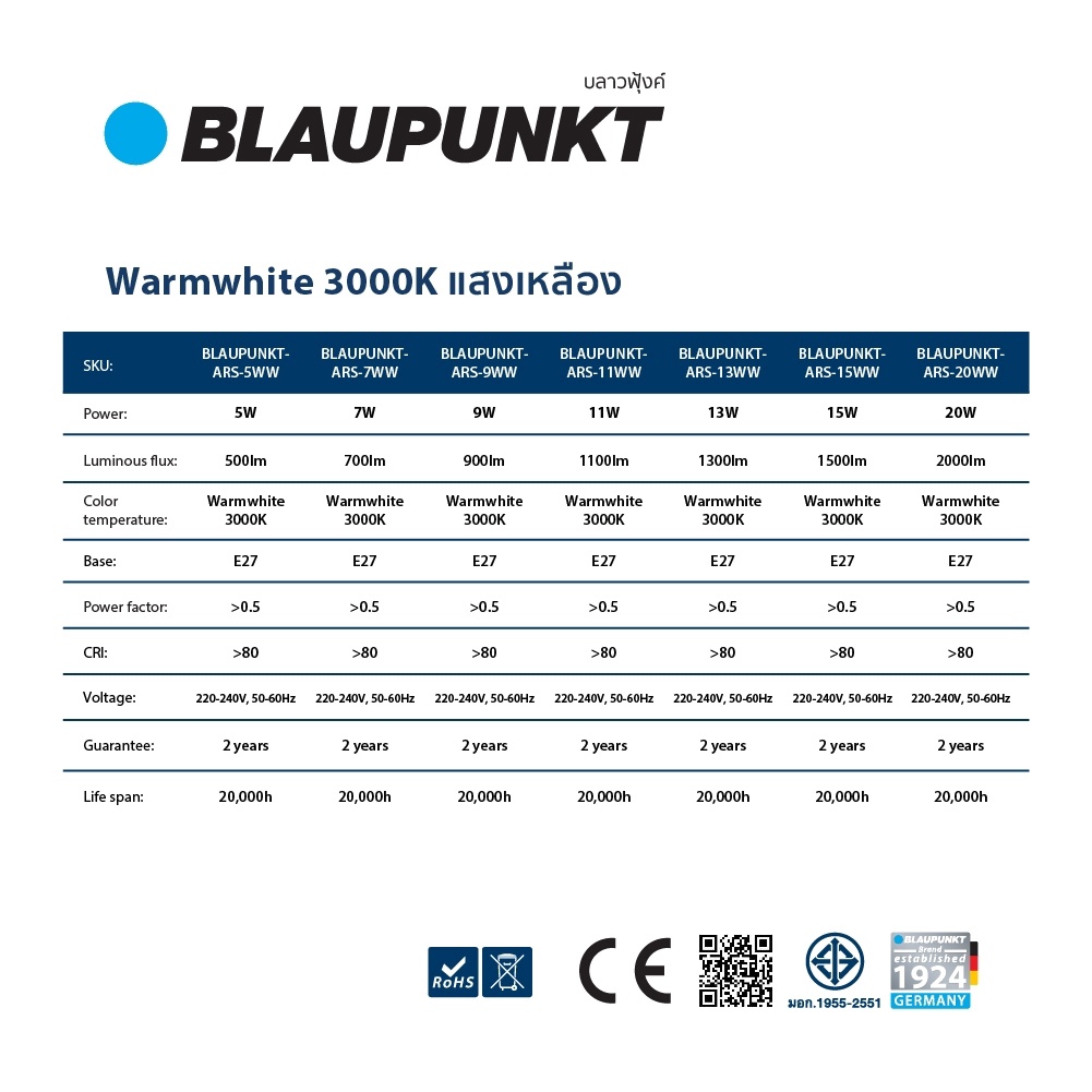 BLAUPUNKT หลอดไฟมาตรฐานเยอรมัน รับปร ะกัน 2 ปี 5W 7W 9W 11W 13W 15W 20W แสงขาว แสงวอร์ม LED BULB