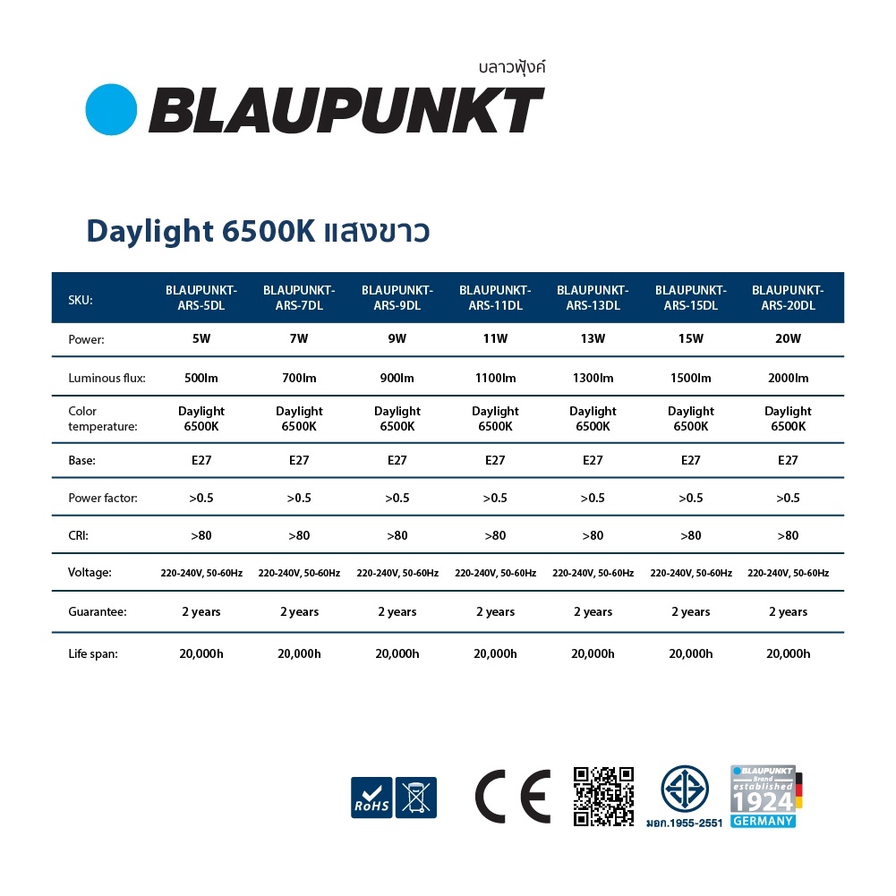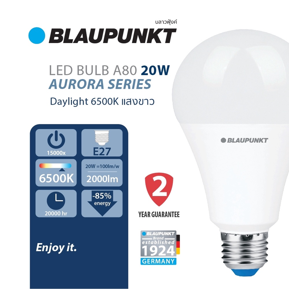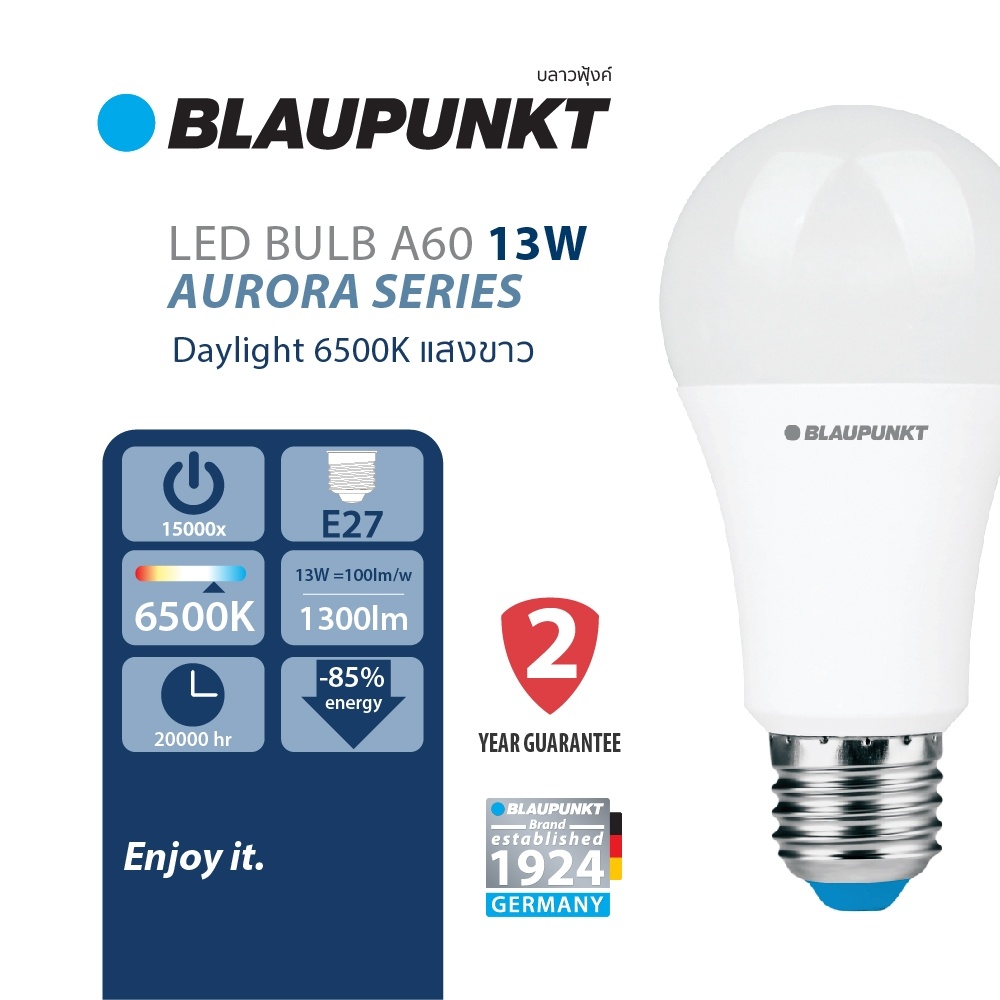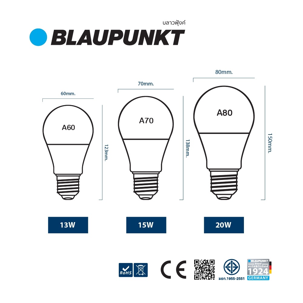 BLAUPUNKT หลอดไฟมาตรฐานเยอรมัน รับปร ะกัน 2 ปี 5W 7W 9W 11W 13W 15W 20W แสงขาว แสงวอร์ม LED BULB