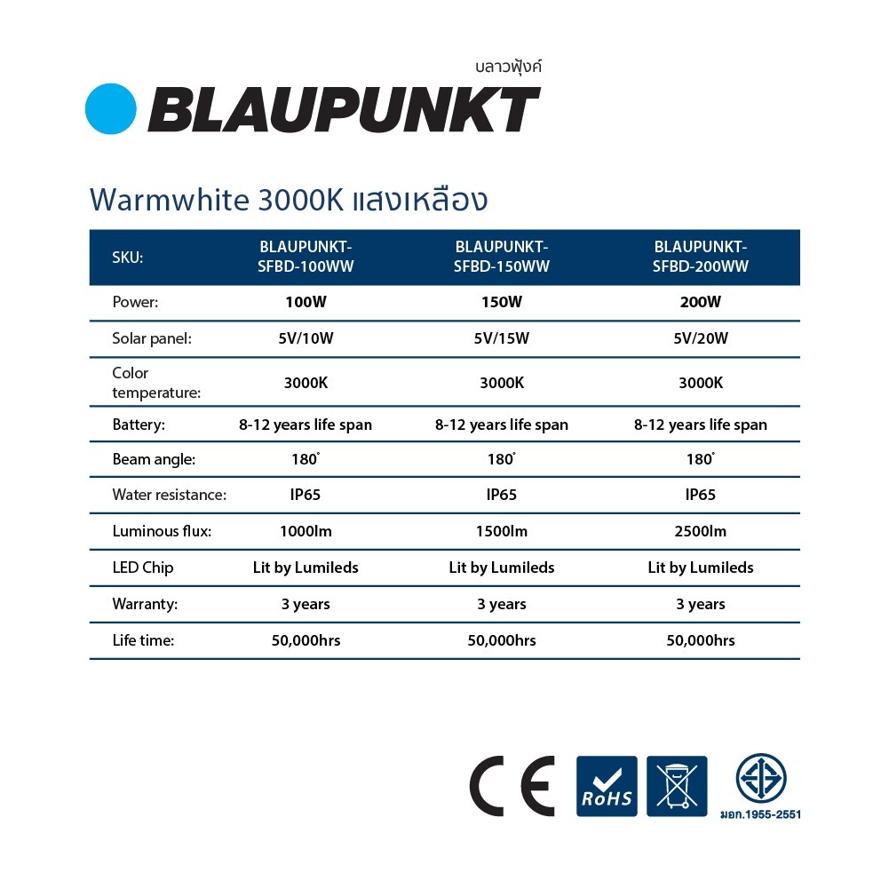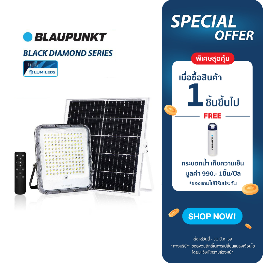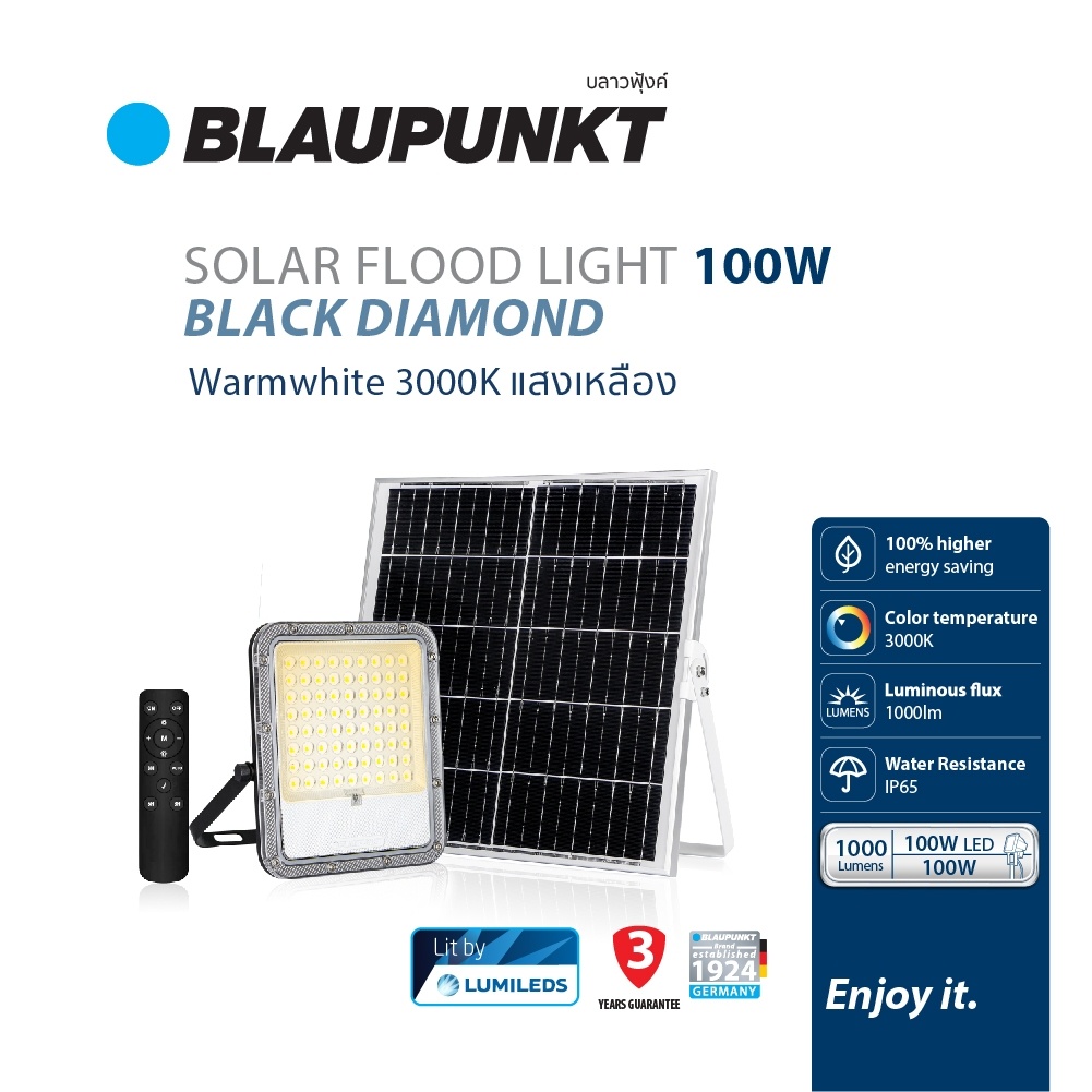 BLAUPUNKT โคมไฟฟลัดไลท์โซล่า 100W 150W 200W LED Flood Light BLACK DIAMOND มาตรฐานเยอรมัน