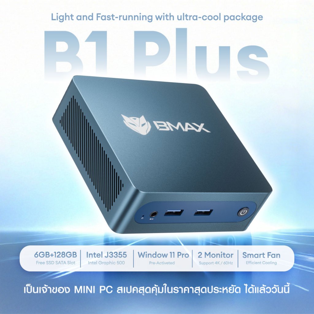 🇹🇭 (2026) BMAX B1 Plus Mini Pc│RAM 6GB / SSD 128GB EMMC │Intel Celeron J3355│Windows 11แท้ พร้อมใช้งาน ประกัน 1ปี