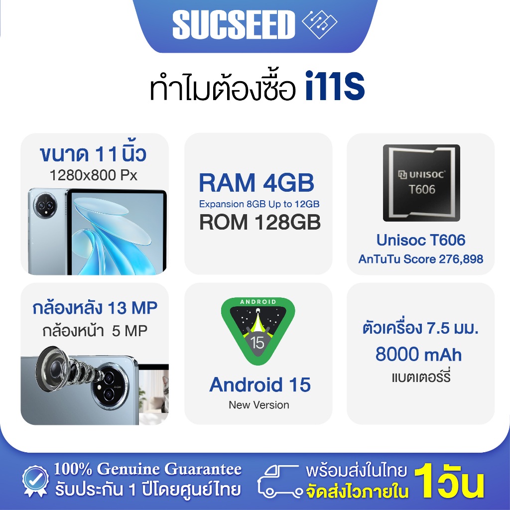 BMAX i11S Tablet 11" IPS In-cell RAM 12GB (4GB+8GB) ROM 128GB T606 Octa-core 8,000 mAh WiFi Only Android 15
