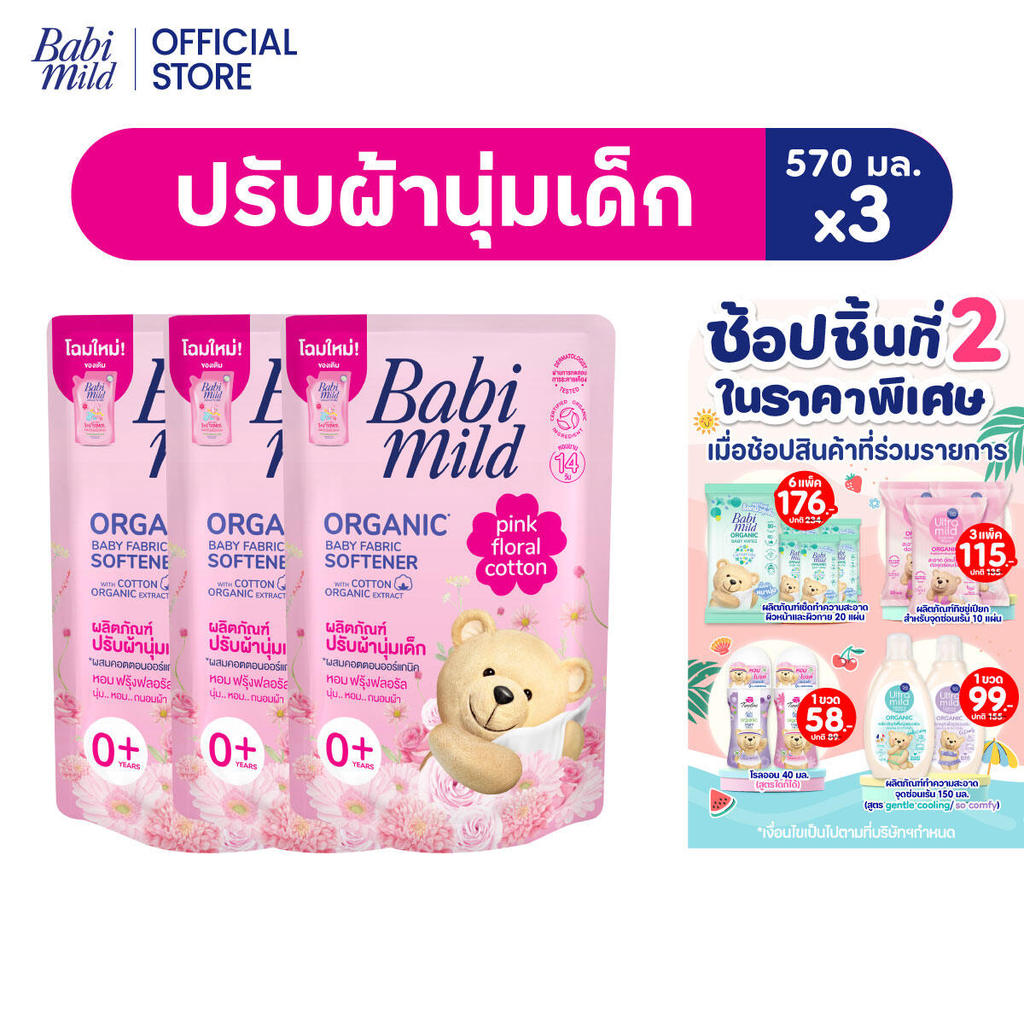 เบบี้มายด์ น้ำยาปรับผ้านุ่มเด็ก พิงค์ ฟลอรัล ถุงเติม 570 มล. x3 / Babi Mild Fabric Softener Pink Floral Refill 570ml x3