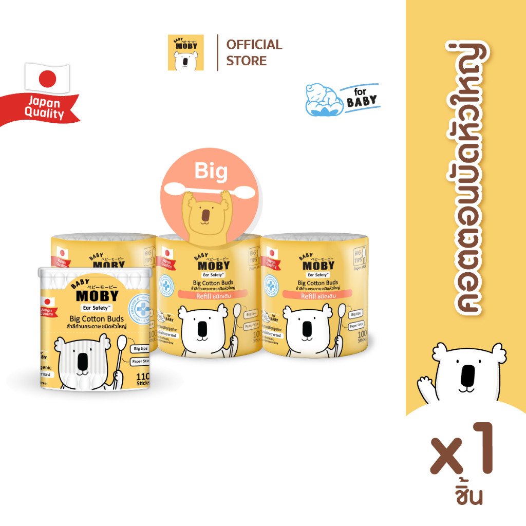 Baby Moby สำลี คอตตอนบัตหัวใหญ่ 110 ก้าน/กระปุก (1 กระปุก) หรือ เเบบชนิดเติม
