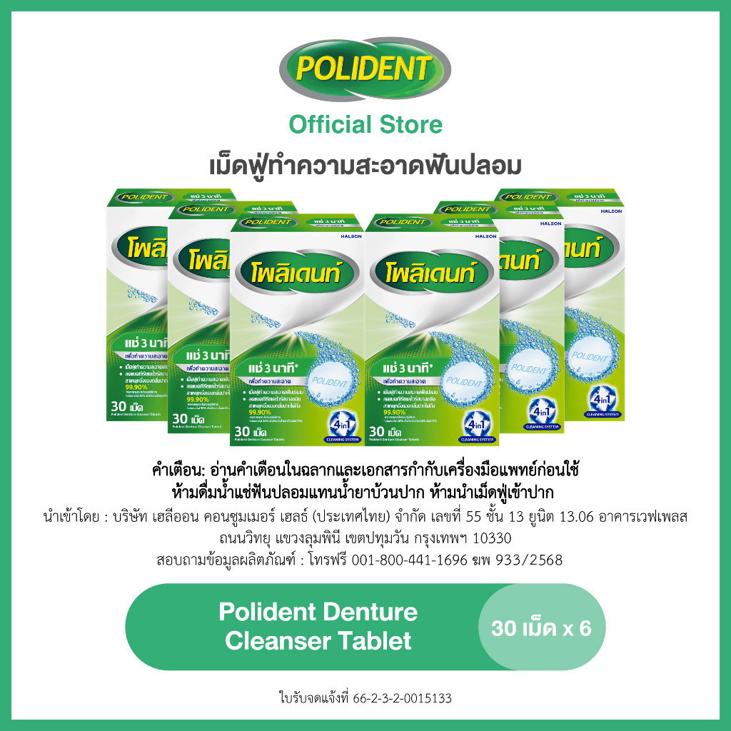 POLIDENT DENTURE CLEANSER 30'S โพลิเดนท์ เม็ดฟู่ทำความสะอาดฟันปลอม 30 เม็ด แพ็ค 6