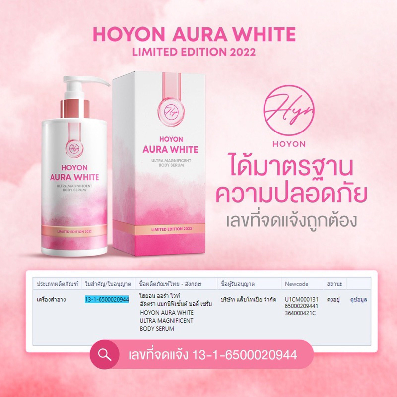 [แพกเกจใหม่ ของแท้‼️]โฮยอนออร่าไวท์ Thida Hoyon Aura White Body Serum โฮยอน โลชั่นธิดาออร่าไวท์ ออร่าไวท์บอดี้เซรั่ม