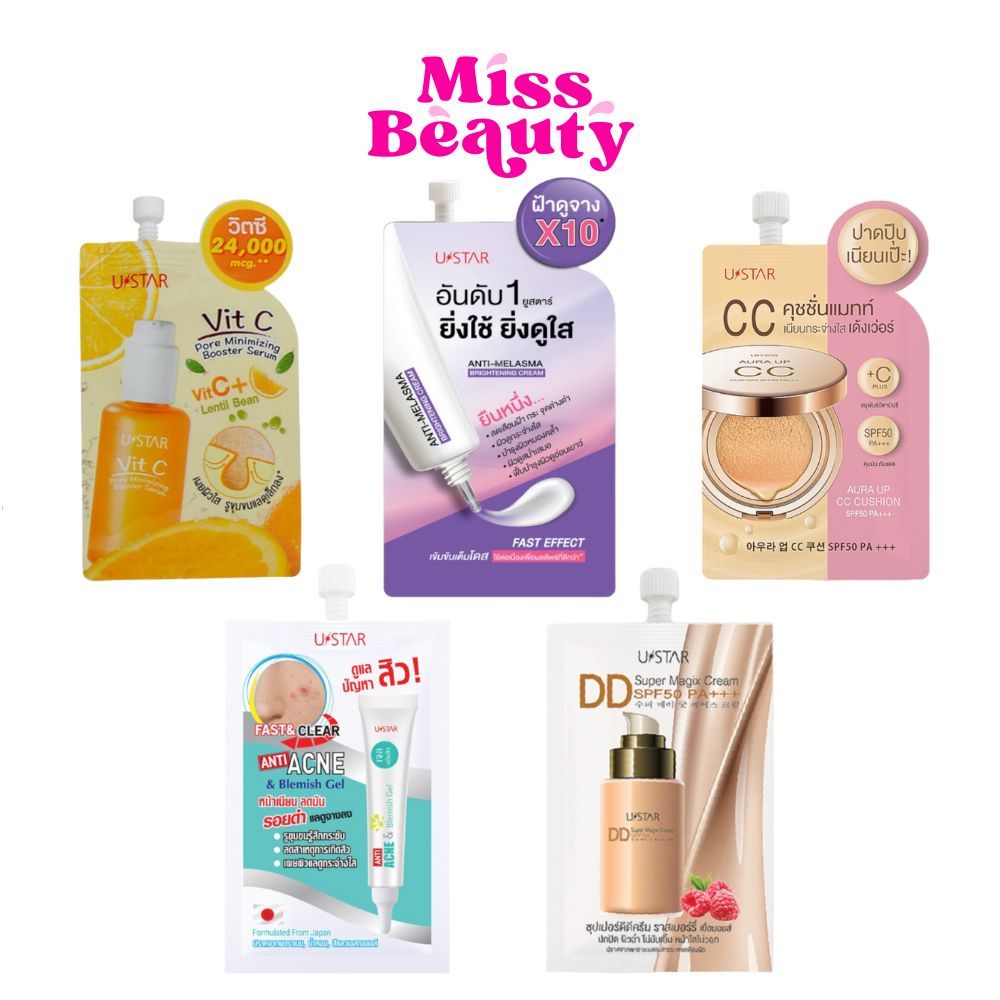 (ซอง) ยูสตาร์ ซอง Ustar ดีดี ซีซี คุชชั่น วิตามินซี เจลแต้มสิว ทาฝ้า ไฮยา DD CC Serum Vit C Acne Hya Melasma Cushion