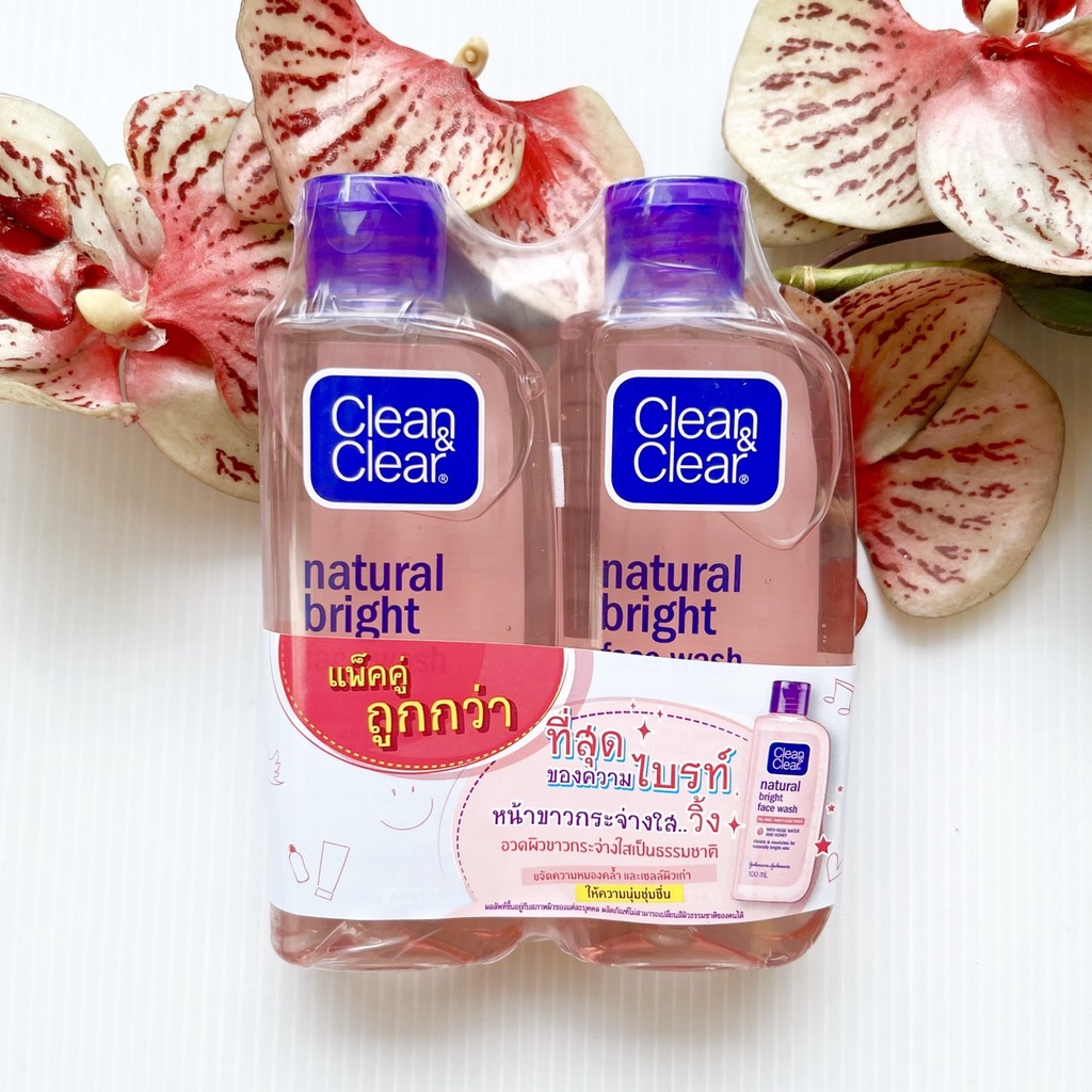 2 ขวด 100 ml. ผลิต 03/25 เจลล้างหน้า คลีนแอนด์เคลียร์ เนเชอรัล ไบร์ท เฟซ วอช สีชมพู Clean & Clear Face Wash