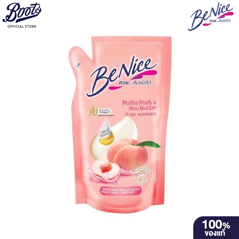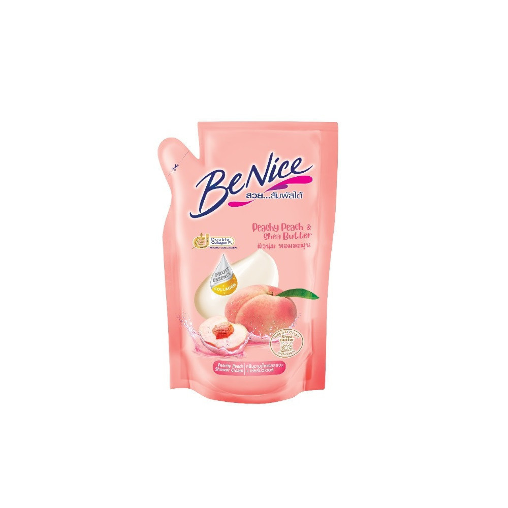 BENICE Peachy Peach & Shea Butter Shower Cream 400 ml. Refill บีไนซ์ ครีมอาบน้ำ เชียร์ บัตเตอร์ พีชชี่ พีช ถุงเติม