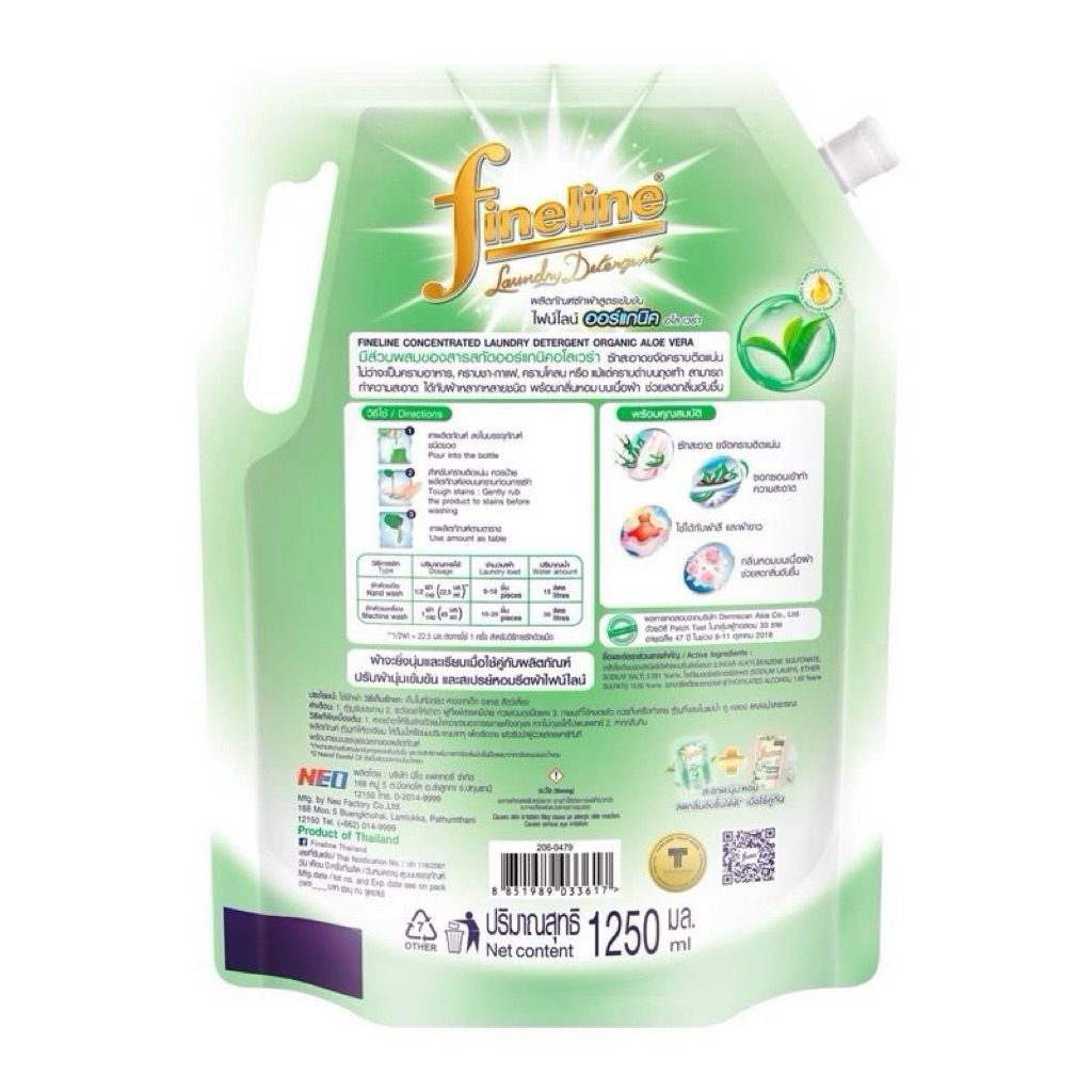 [โปร 3 ถุง]Fineline น้ำยาซักผ้า ไฟน์ไลน์ สูตรเข้มข้น ออแกนิค อโลเวร่า ถุงเติม 1,250 มล.x 3 ถุง โปรสุดคุ้ม Clean