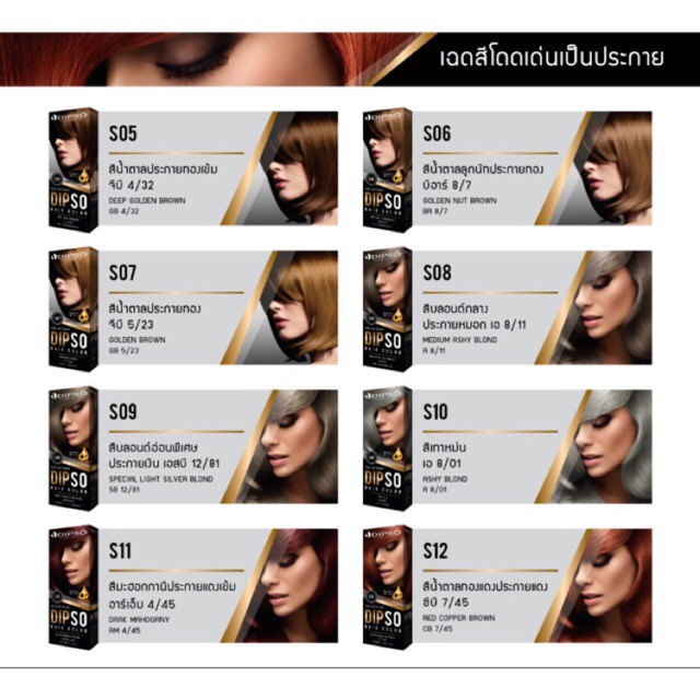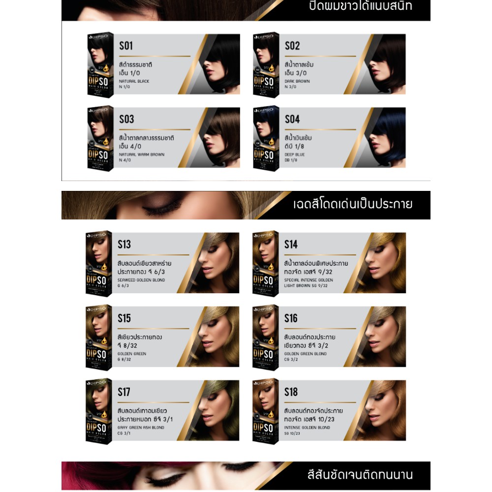 DIPSO S01-S18 ครีมเปลี่ยนสีผม ดิ๊พโซ่ 110 กรัม (ไม่มีแอมโมเนีย กลิ่นไม่ฉุน) Dipso Hair Color Cream 110g. (No Ammonia)