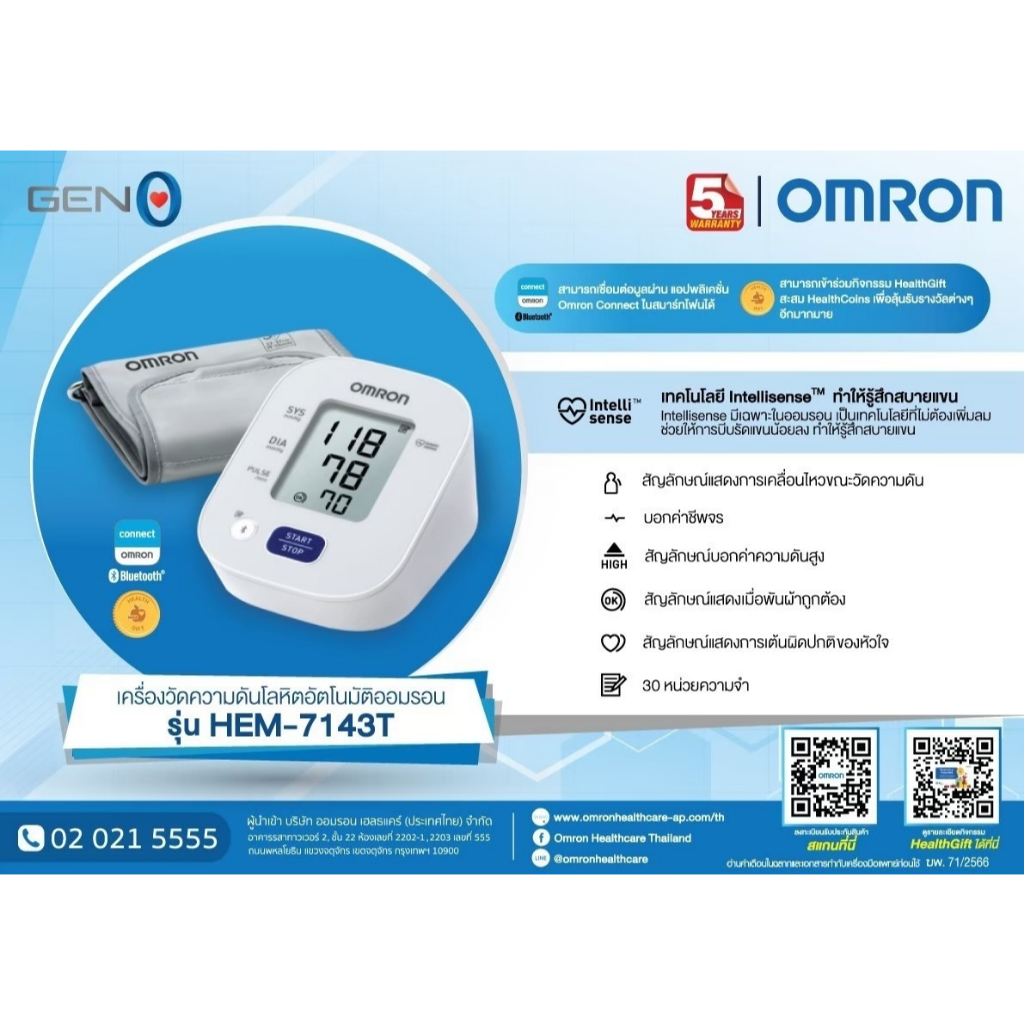 OMRON เครื่องวัดความดันโลหิตอัตโนมัติ รุ่น HEM-7143T1