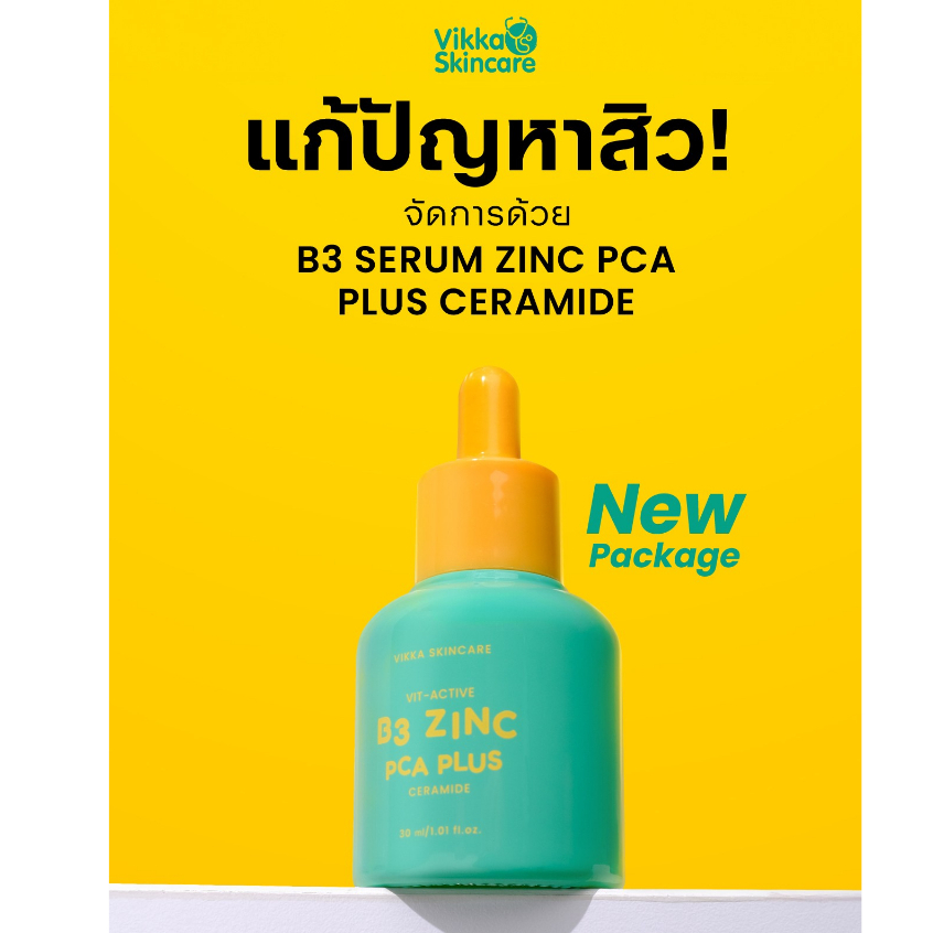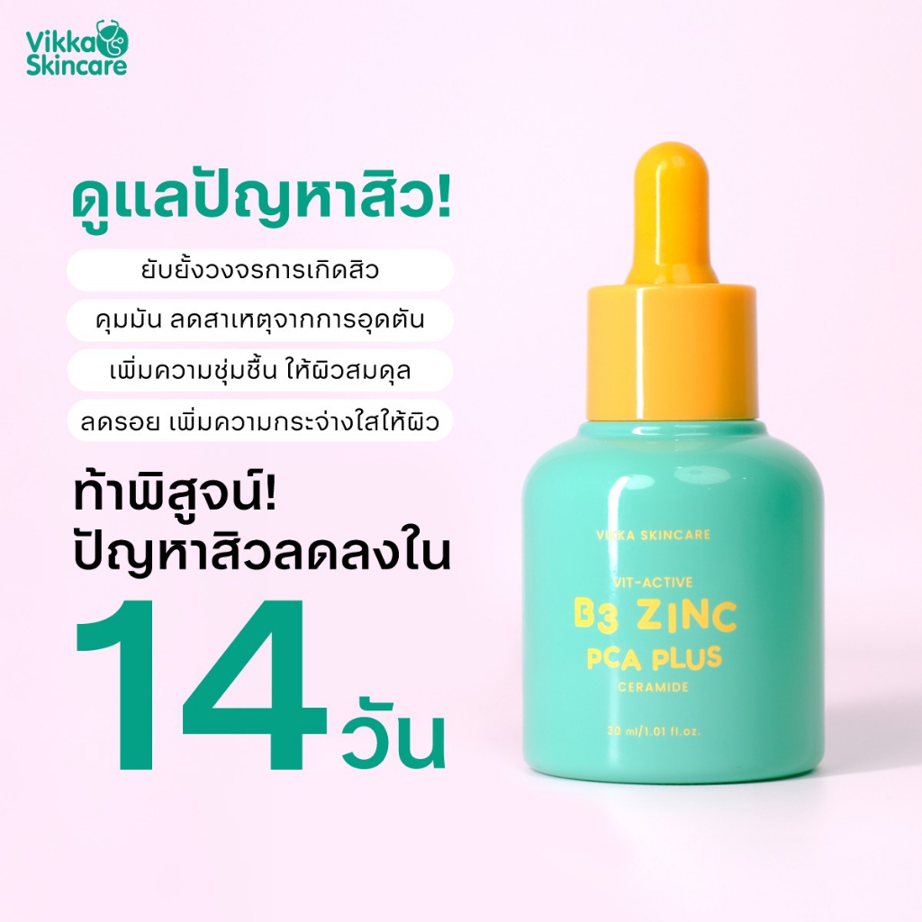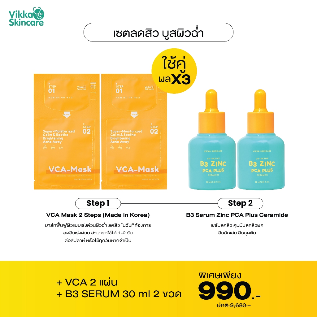 VIKKASKINCARE NEW! Vit-Active B3 Niacinamide Zinc PCA สูตรอ่อนโยน + Vca Mask Sheet 2 Step เซรั่มรักษาสิว บูสผิวฉ่ำ