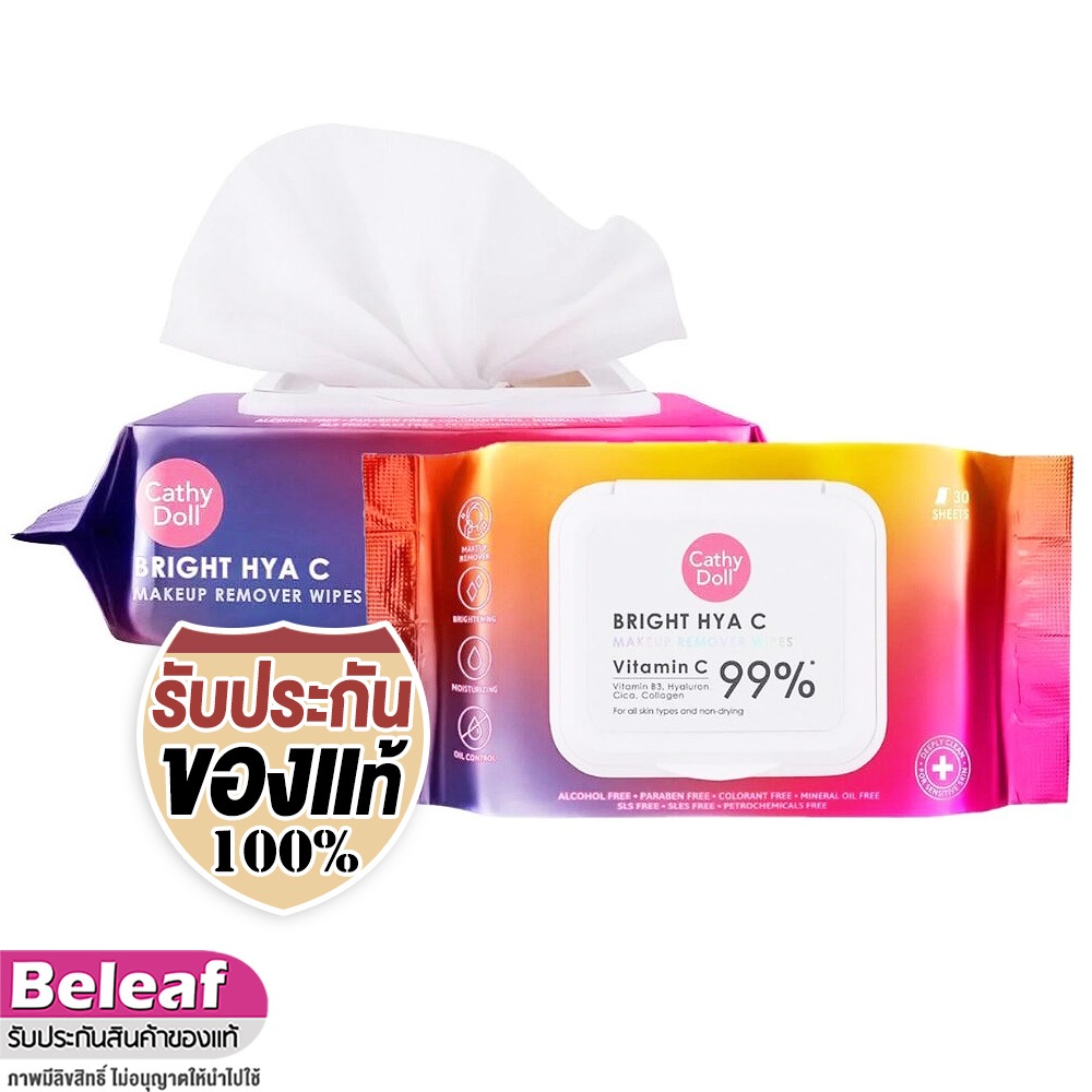 เคที่ดอลล์ ไบร์ทไฮยาซี เช็ดชู่เปียก ล้างเครื่องสําอาง (30แผ่น) Cathy Doll Bright Hya C MakeUp Remover Wipes