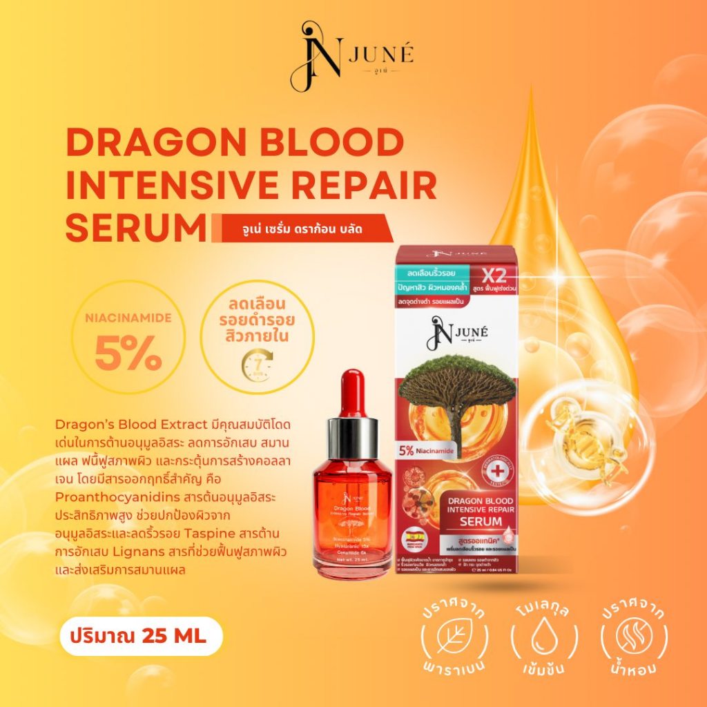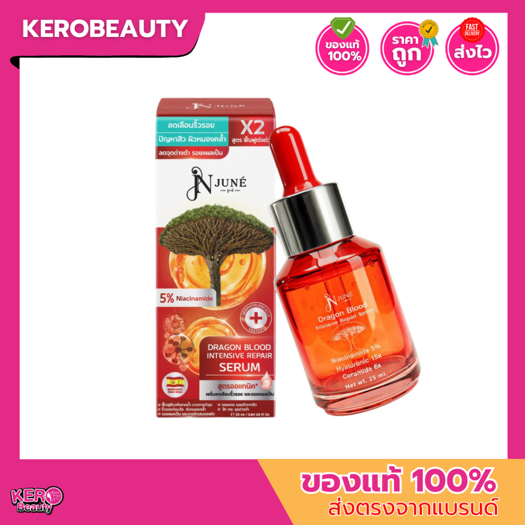 (ขวด) จูเน่ N JUNÉ Dragon Blood Intensive Repair Serum Niacinamide5% 25g. เซรั่มลดเลือนริ้วรอย บำรุงผิวหน้า
