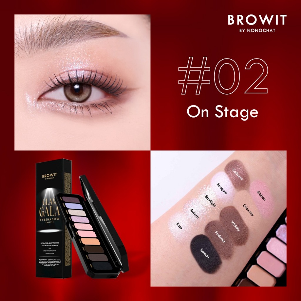 ถูก/แท้/มีไลฟ์ พาเลทท์ น้องฉัตร Browit Glam Gala Eyeshadow Palette พาเลทติดแกลม ทาตา แต่งตา ชิมเมอร์ กลิตเตอร์