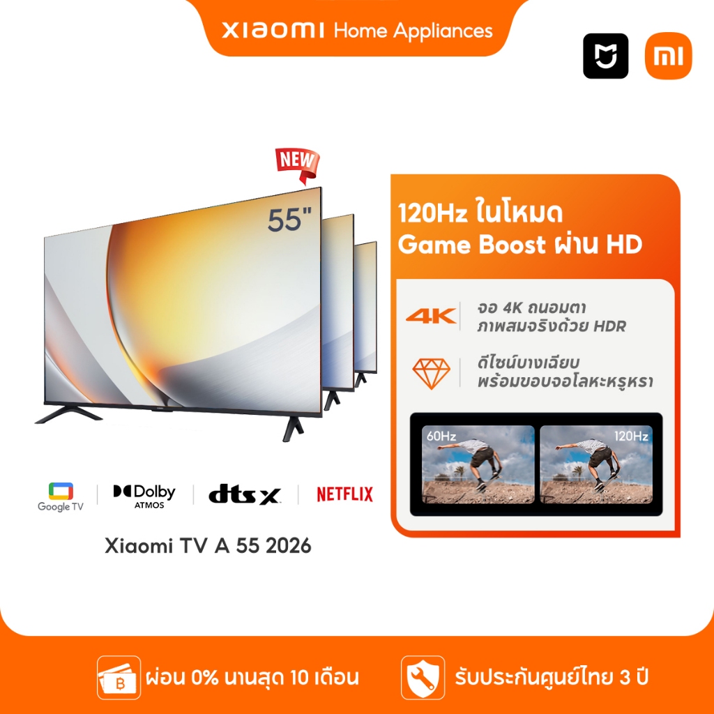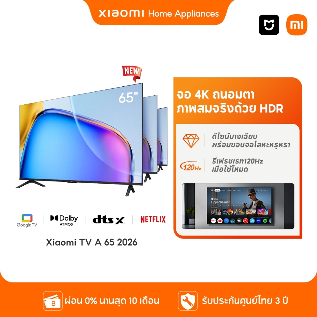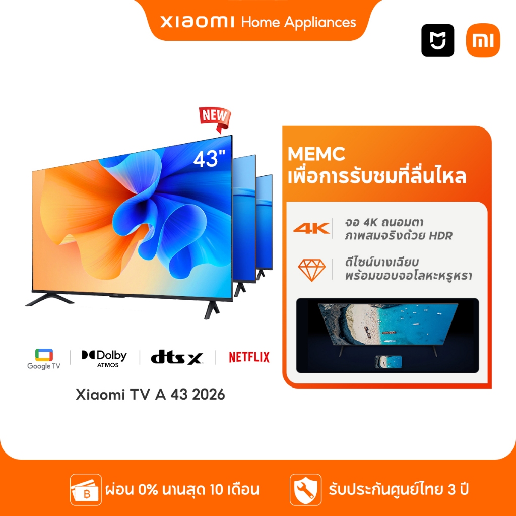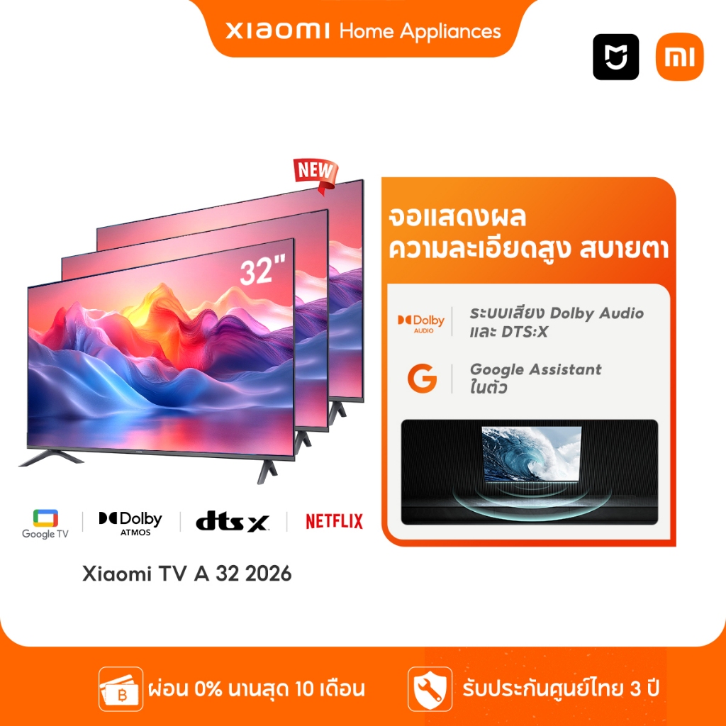 Xiaomi Smart TV A 32 / 43 2026 FHD HD Google สมาร์ททีวี การออกแบบไร้ขอบ ดิจิตอลทีวี Google Netflix Youtube Dolby Vision