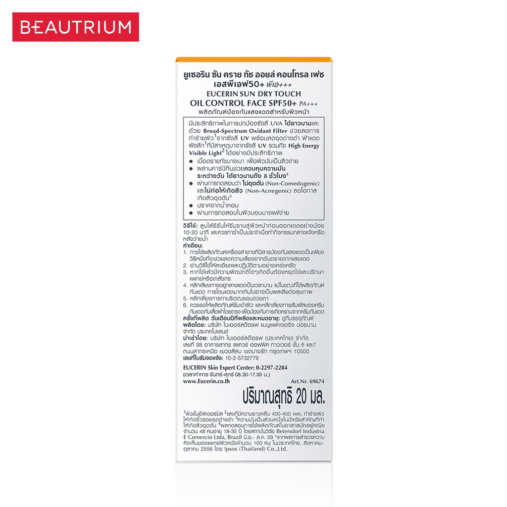 EUCERIN Sun Dry Touch Acne Oil Control Face SPF50+ PA+++ ครีมกันแดด 20ml