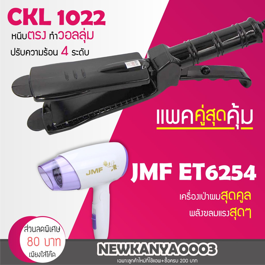 LIC 🔥 แพ็คคู่สุดคุ้ม 🔥 เครื่องหนีบผม CKL / JMF 1022 ที่หนีบผม หนีบตรง หนีบเงา+ไดร์เป่าผม ที่เป่าผม JMF ET 6254