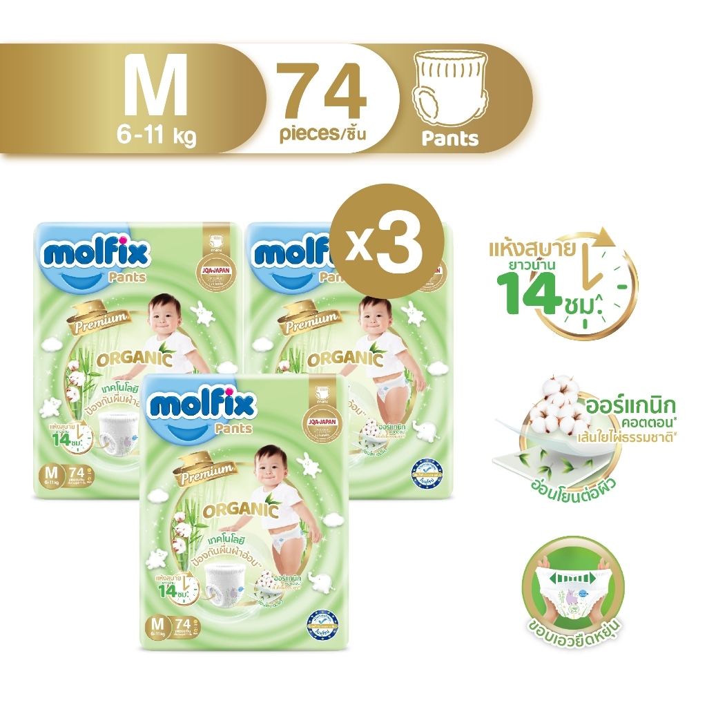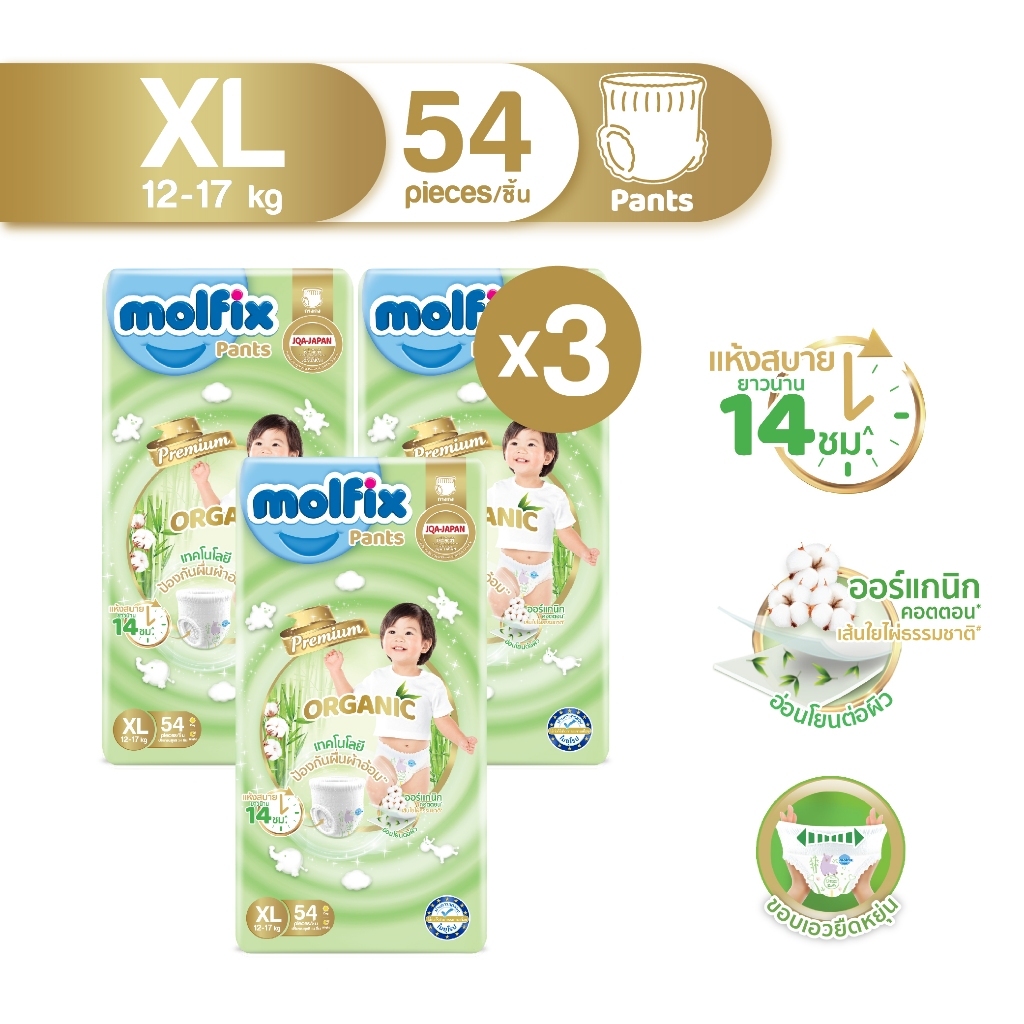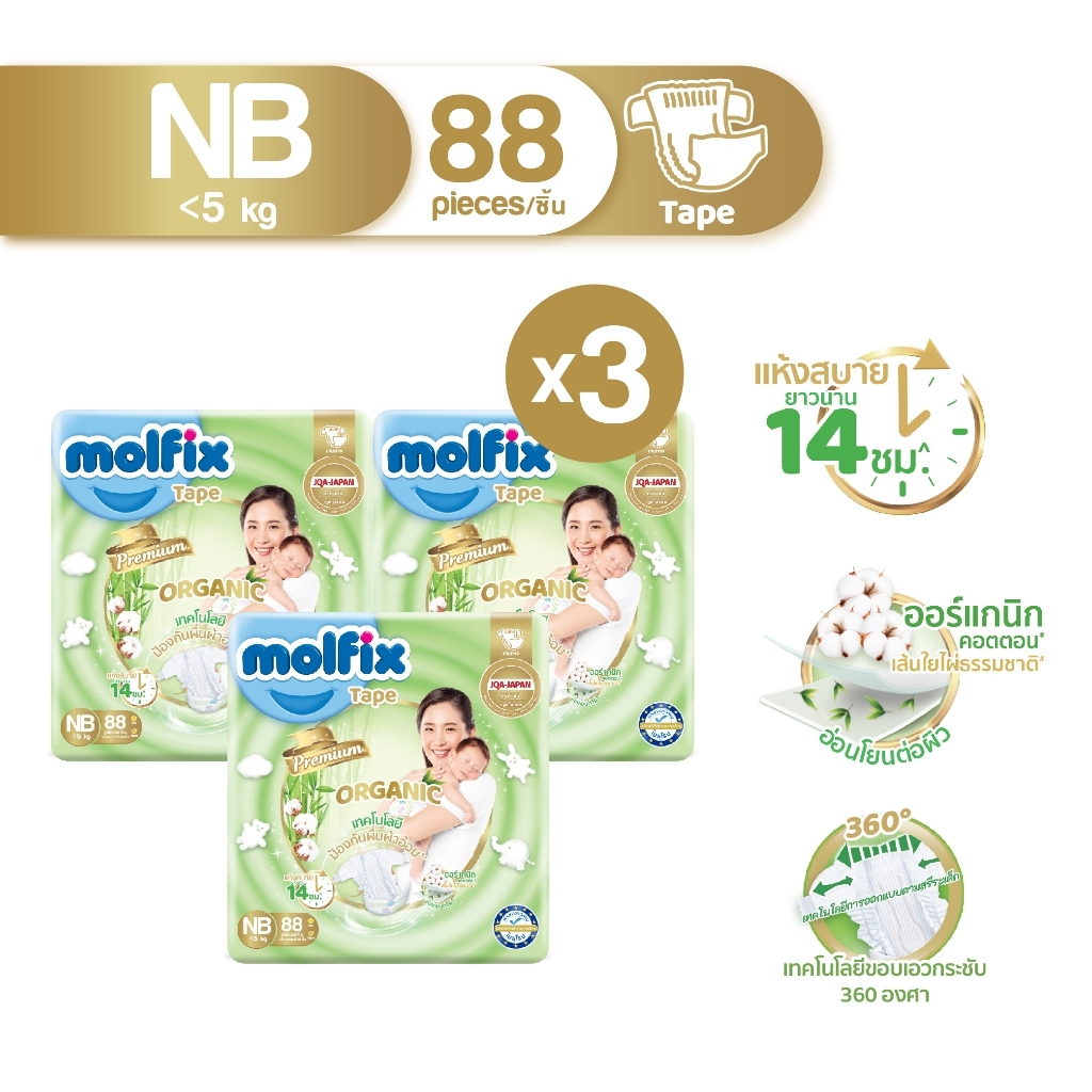 [ยกลังx3] Molfix Organic ผ้าอ้อมเด็ก ใยไผ่ โมลฟิกซ์ ออร์แกนิก ผ้าอ้อมสำเร็จรูป (ไซส์ NB-2XL) แพมเพิสเด็ก แพมเพิส โมฟิก
