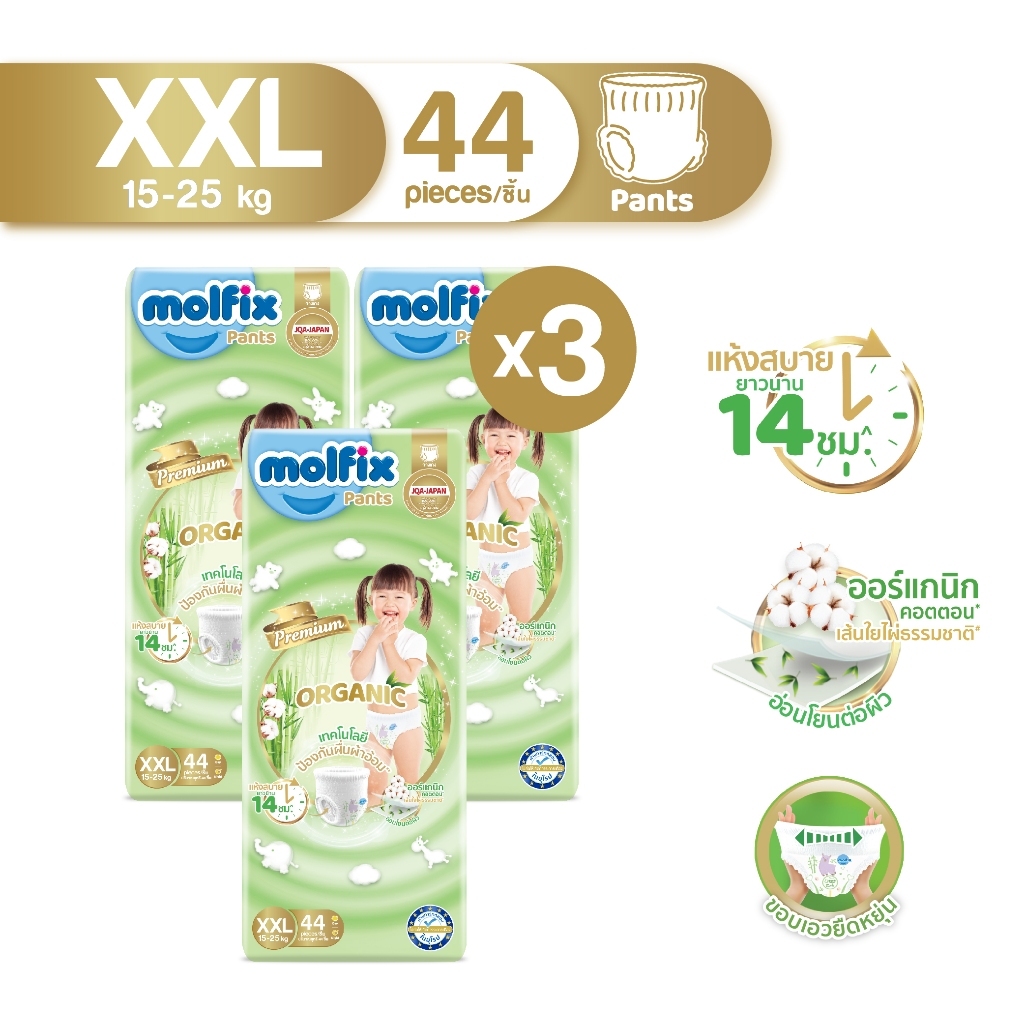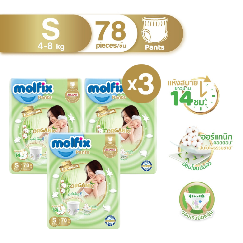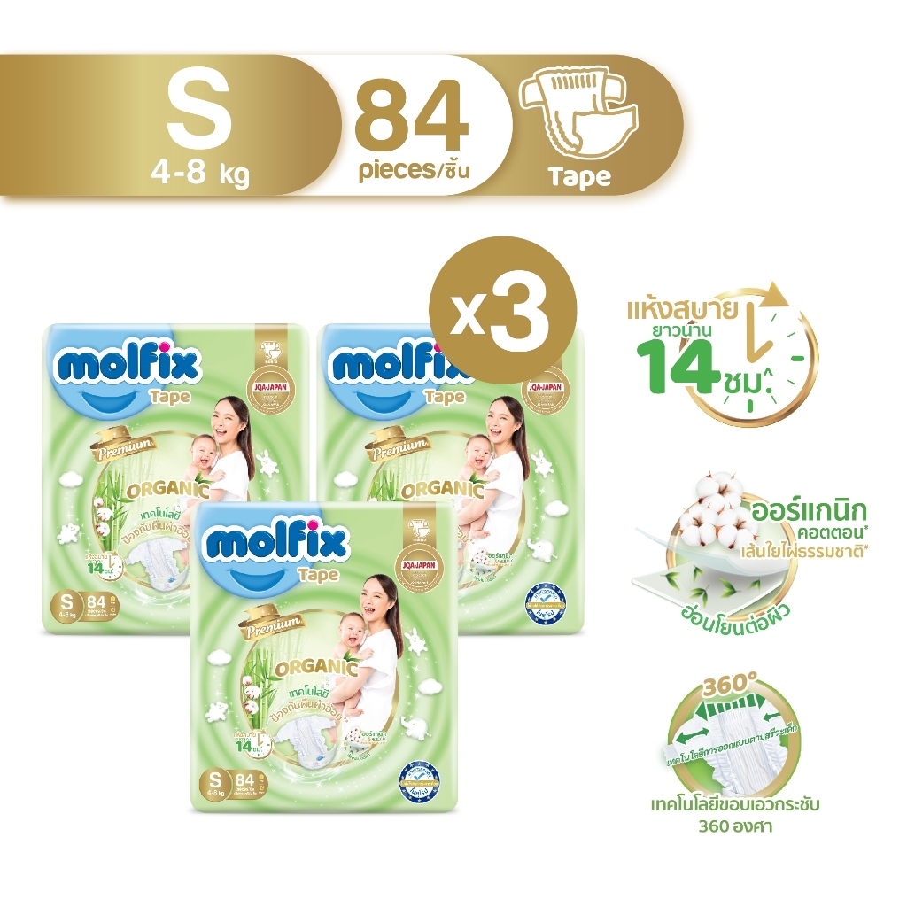 [ยกลังx3] Molfix Organic ผ้าอ้อมเด็ก ใยไผ่ โมลฟิกซ์ ออร์แกนิก ผ้าอ้อมสำเร็จรูป (ไซส์ NB-2XL) แพมเพิสเด็ก แพมเพิส โมฟิก