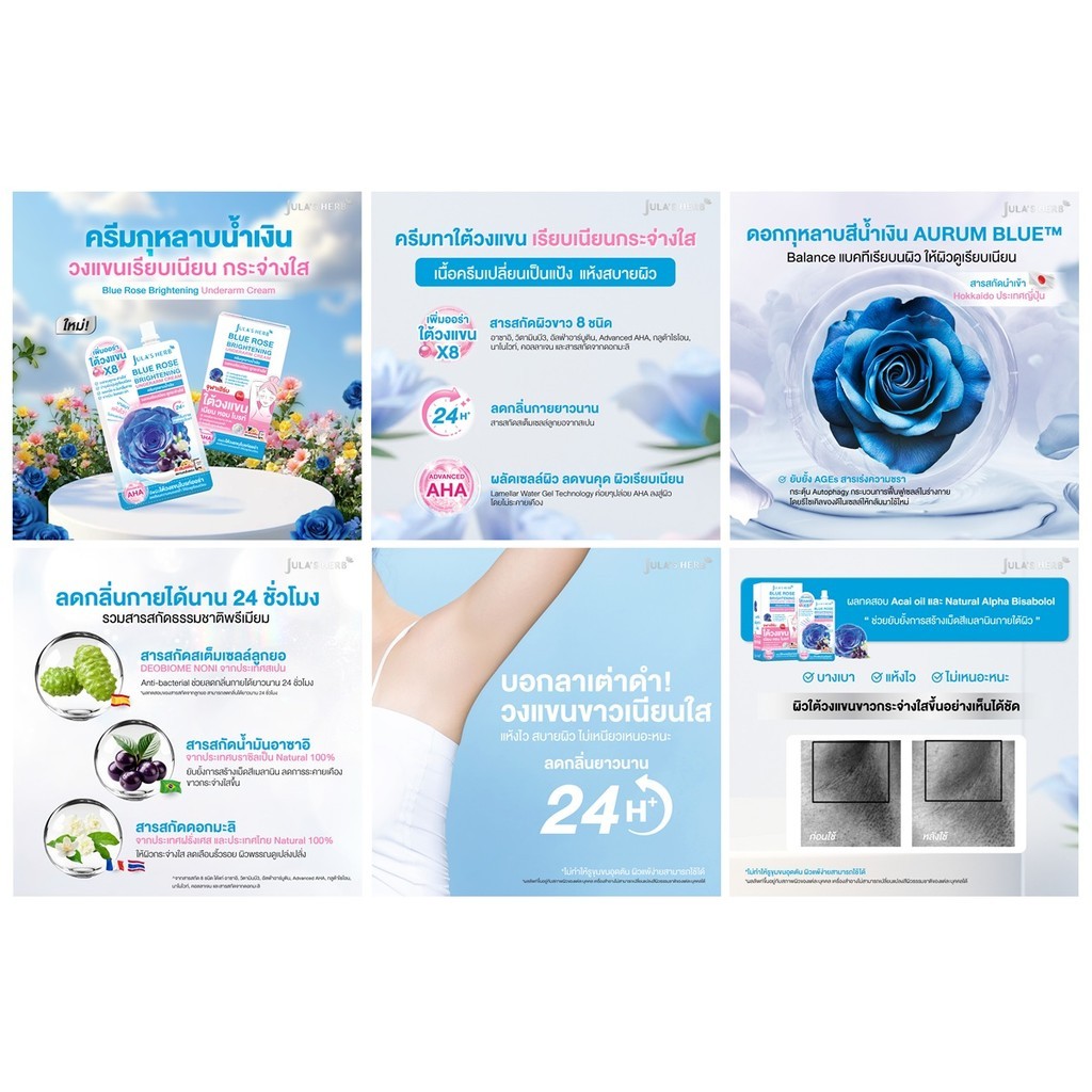 🔥แท้/ดีลสุดคุ้ม/ไลฟ์ทุกวัน🔥(กล่องx6ซอง) จุฬาเฮิร์บ บลูโรสไบรท์เทนนิ่ง อันเดอร์อาร์มครีม ผลิตภัณฑ์บำรุงใต้วงแขน 10 g