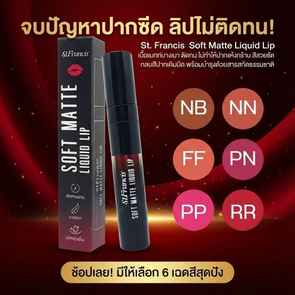 [CLEARANCE] ST.FRANCIS ลิปแมตต์ Soft Matte Liquid Lip 2.8g เบาสบาย สีชัด ติดทนนาน ไม่ตกร่อง
