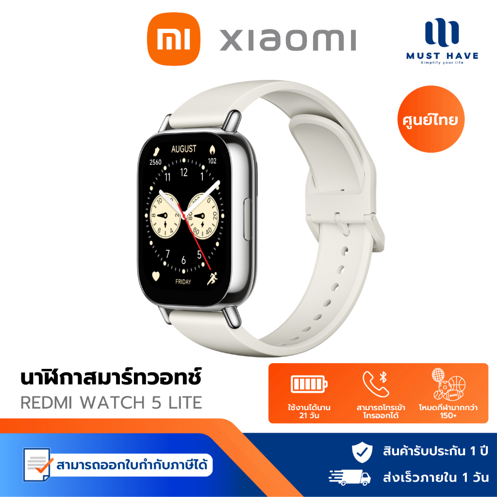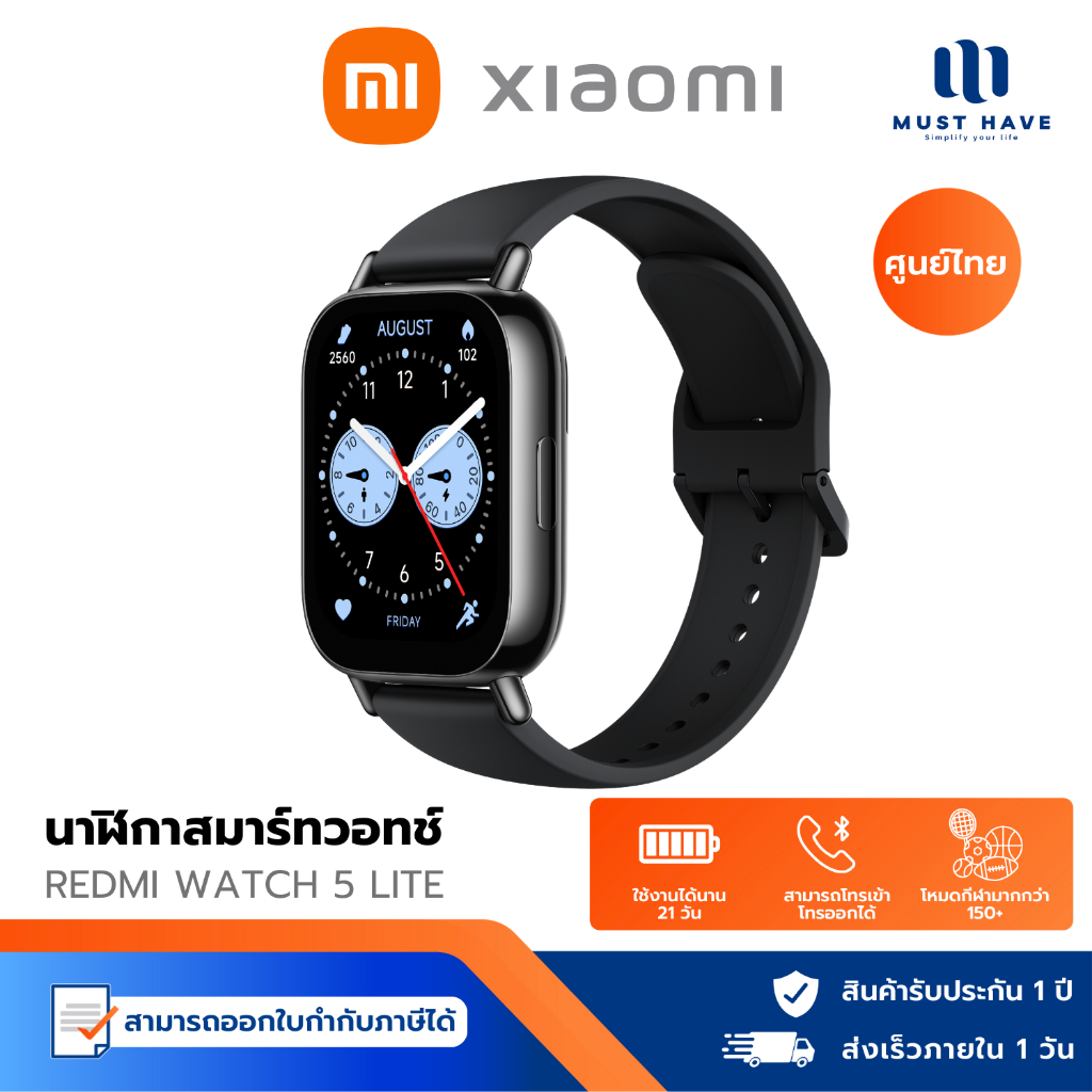 Redmi Watch 5 Lite สมาร์ทวอทช์ AMOLED 1.96 นิ้ว รองรับ GPS Bluetooth Calling กันน้ำ 5ATM