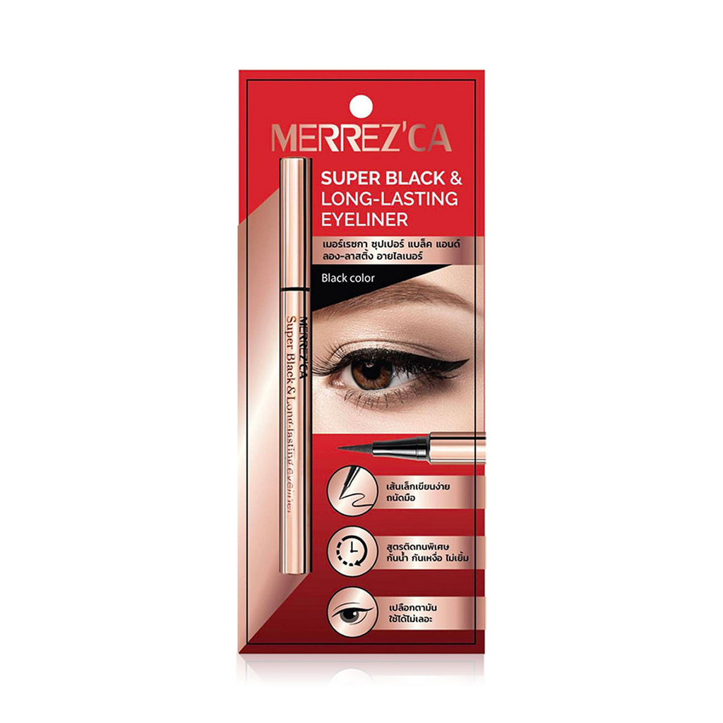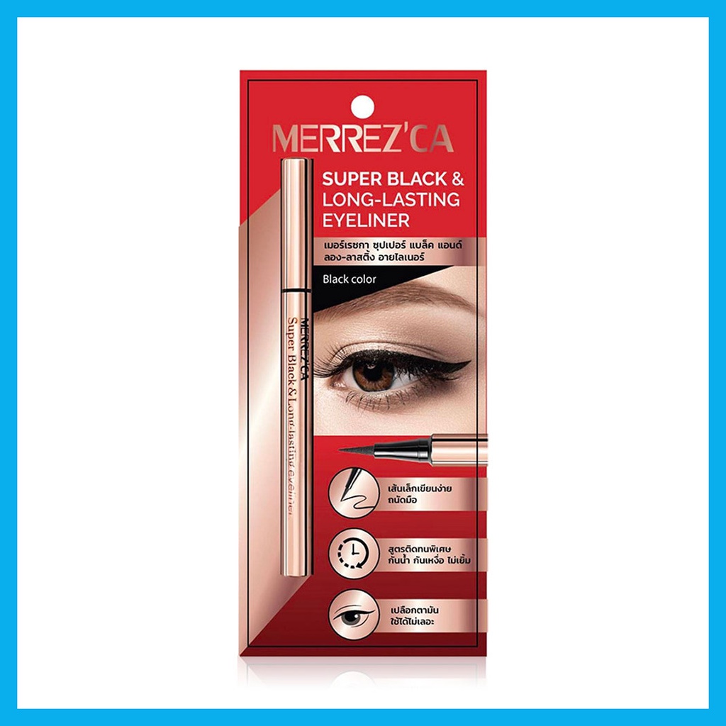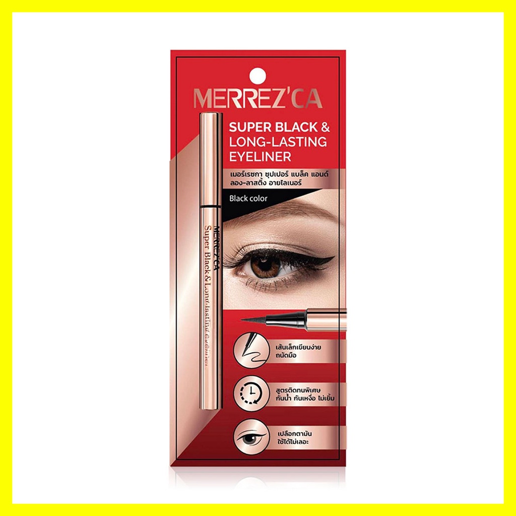 Merrezca Super Black Long-Lasting Eyeliner 0.8g เมอร์เรซกา อายไลเนอร์ หัวเมจิกเส้นเรียวเล็ก.