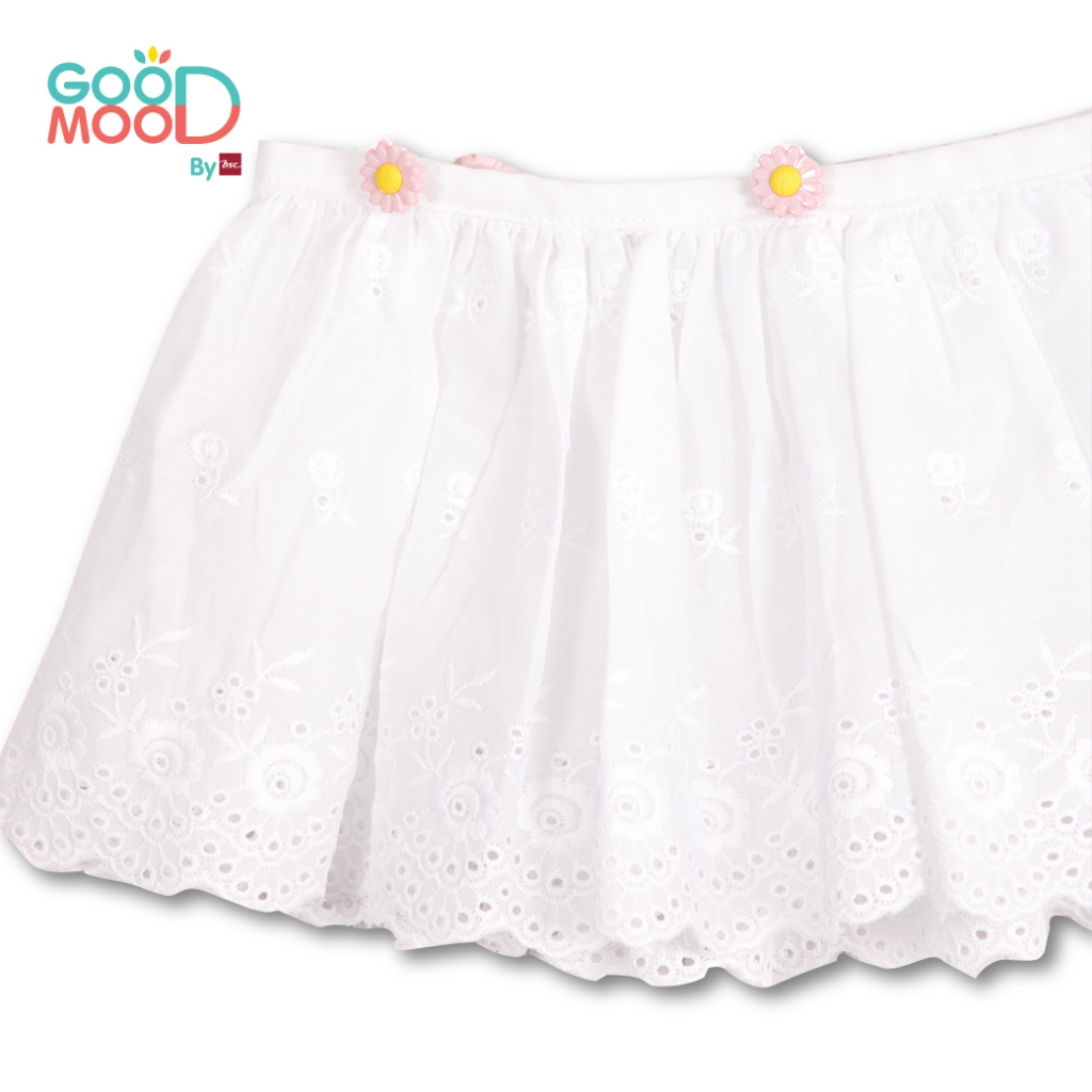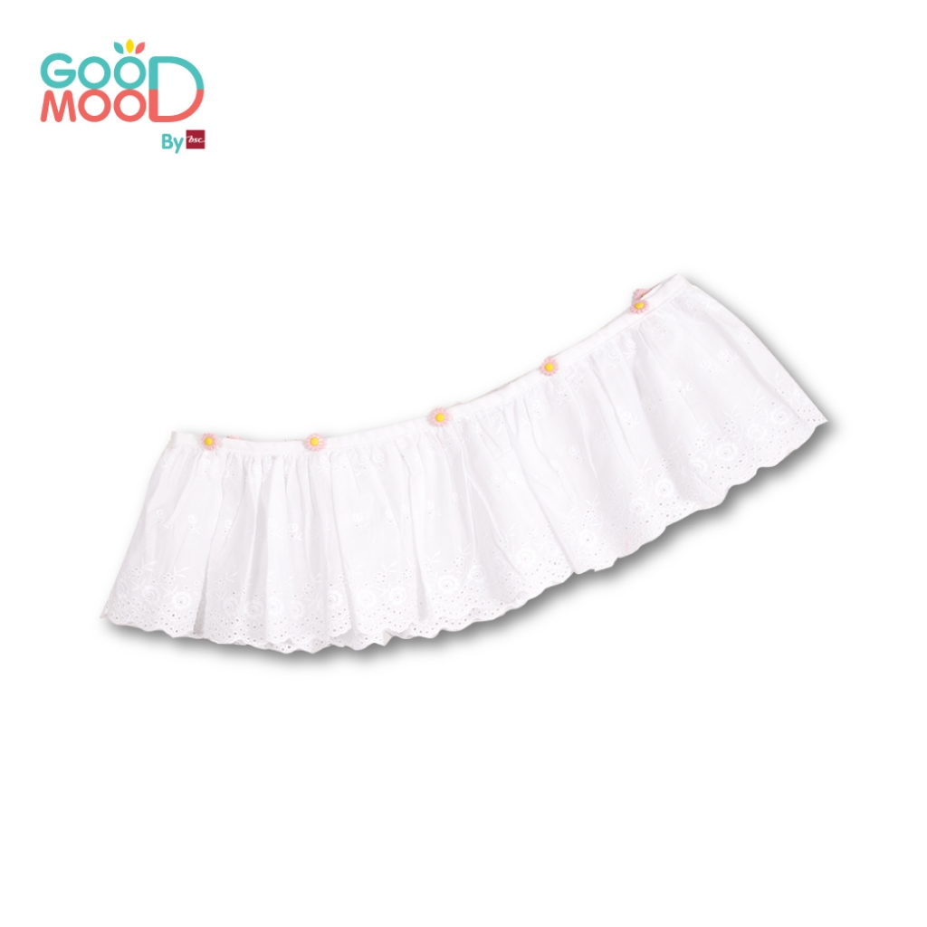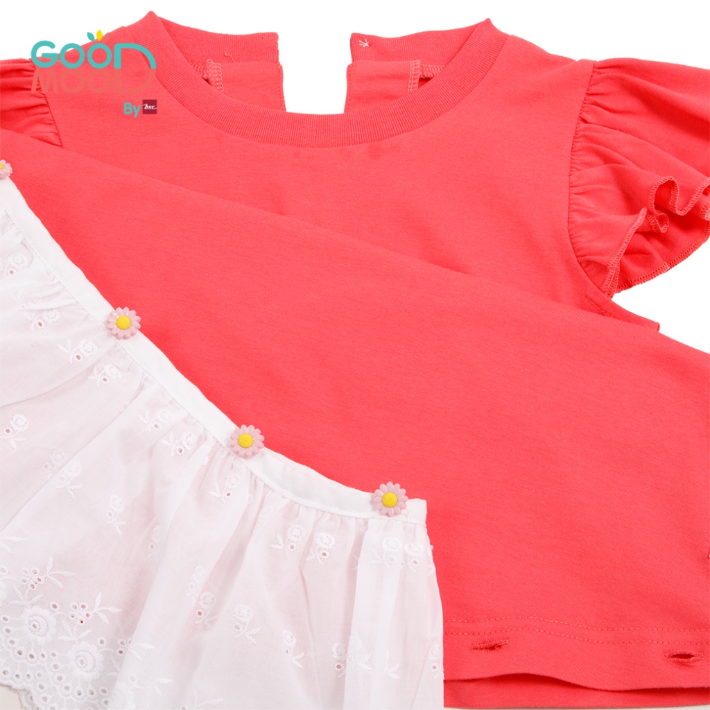 Good Mood by bsc เสื้อยืดแขนระบาย สีชมพูเข้ม+ชายกระโปรงลูกไม้ สีขาว สำหรับเด็กอายุ 6-7 ปี ผ้าคอตตอน