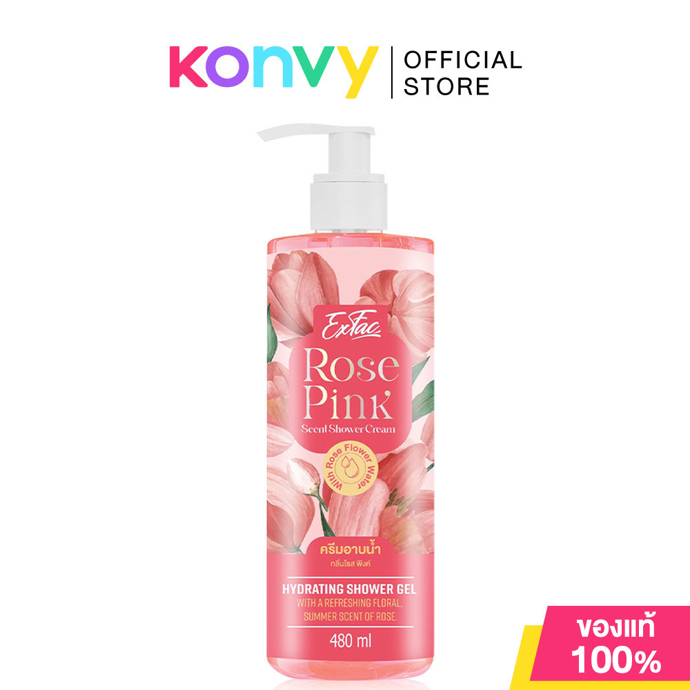 EXFAC Rose Pink Scent Shower Cream 480ml เอ็กซ์แฟค ครีมอาบน้ำ กลิ่นโรสพิ้งค์ ผลิตภัณฑ์ครีมอาบน้ำทำความสะอาดผิวกาย.