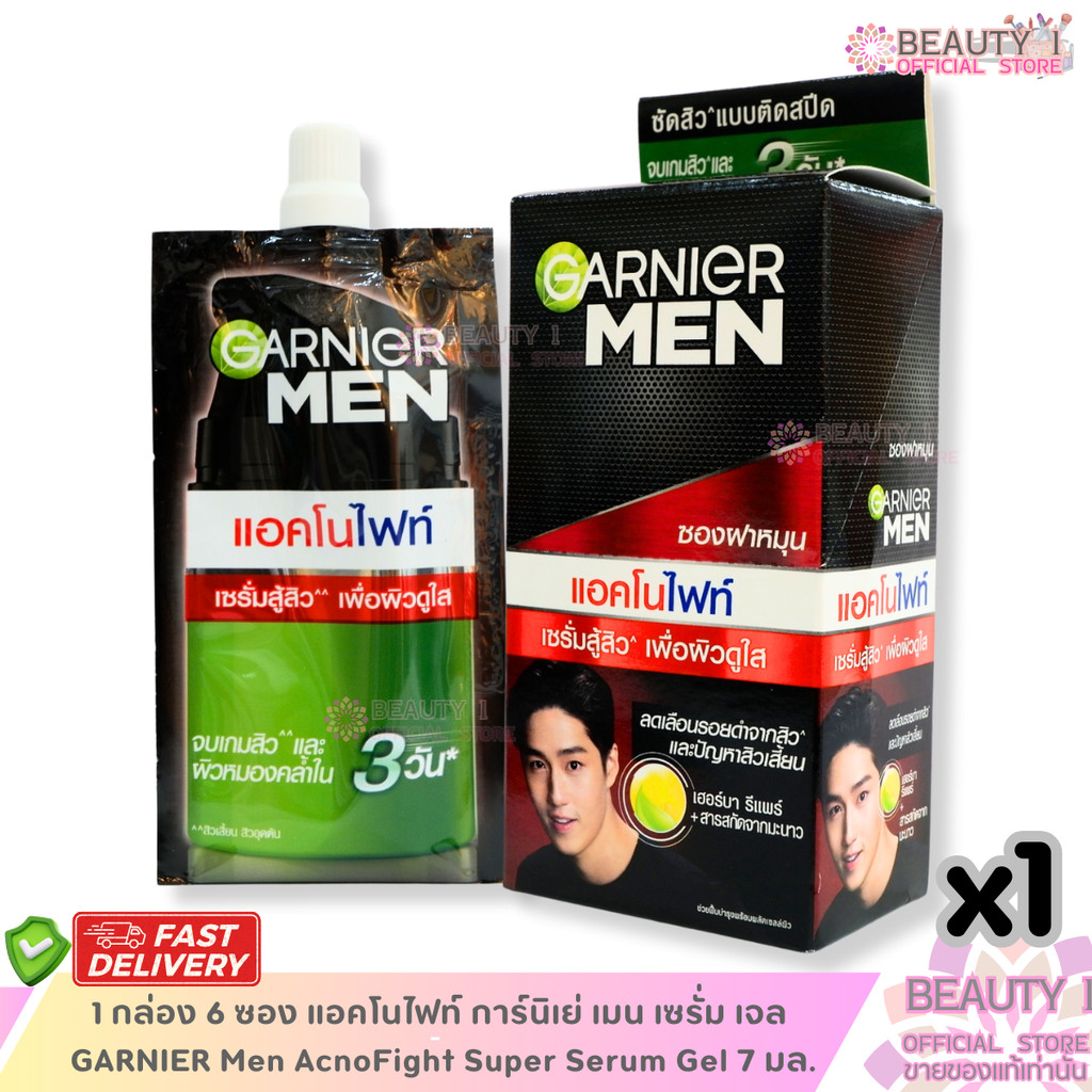 1 กล่อง 6 ซองการ์นิเย่ เซรั่ม ครีม บำรุงผิวหน้า ผู้ชาย Garnier Men Serum Gel ปริมาณ 7ml.