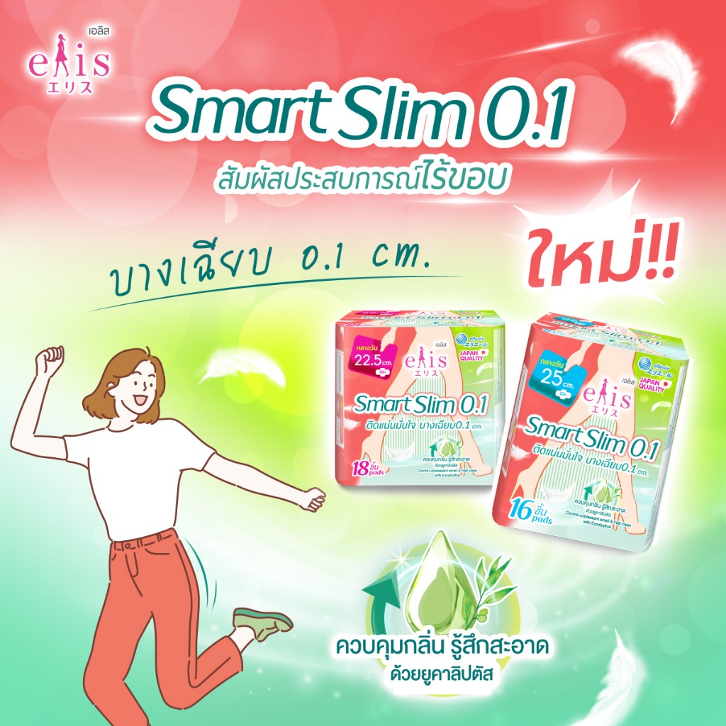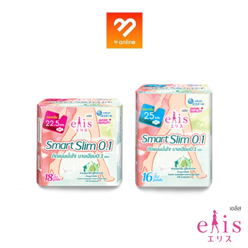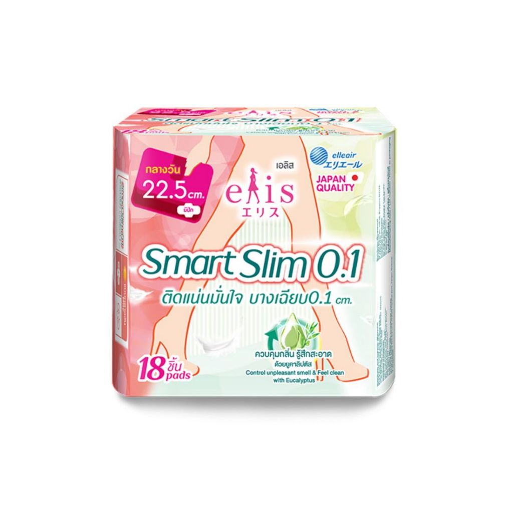 elis ผ้าอนามัย รุ่น Smart slim 0.1 เอลิส สมาร์ท สลิม ผ้าอนามัยแบบมีปีก ขนาด 22.5/25 cm. แห้งสบาย