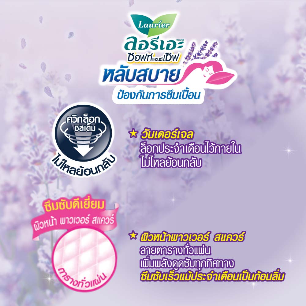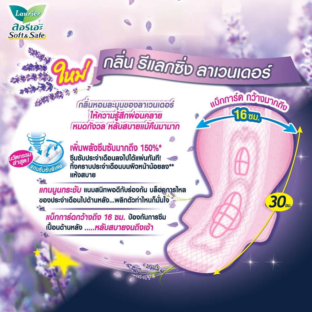 ลอรีเอะ หลับสบาย กลิ่นกู๊ดดรีมลาเวนเดอร์ แบบกลางคืน 30ซม12ชิ้น LaurierSoft & SafeGood DreamLavender Scent
