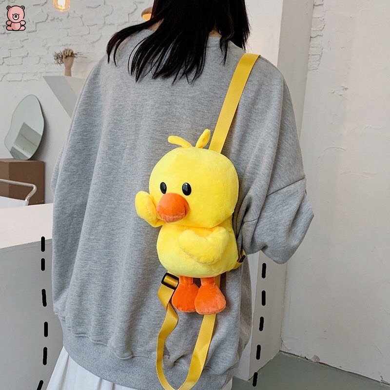 Kawaii กระเป๋าเป้สะพายหลัง ลายการ์ตูนเป็ดน้อยน่ารัก สีเหลือง สําหรับเด็กผู้หญิง เหมาะกับการพกพาเดินทาง วาเลนไทน์