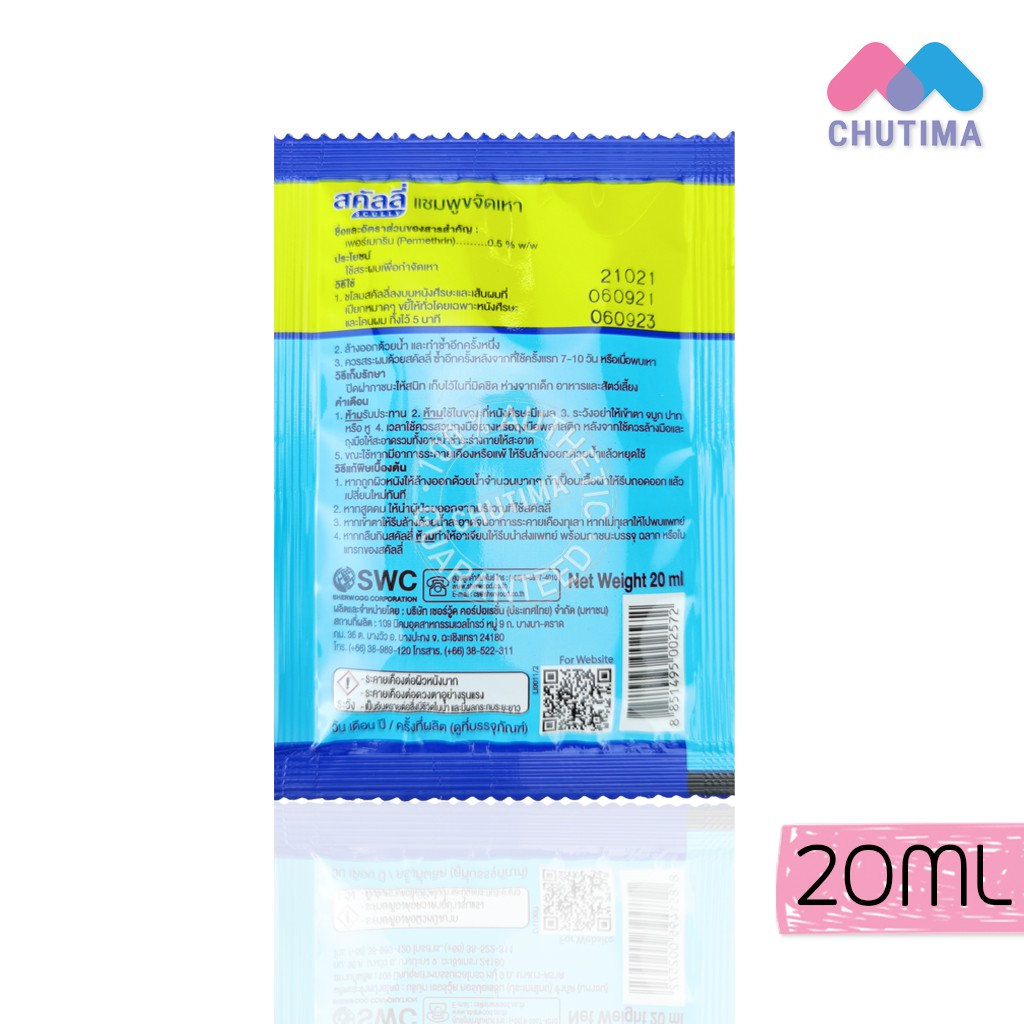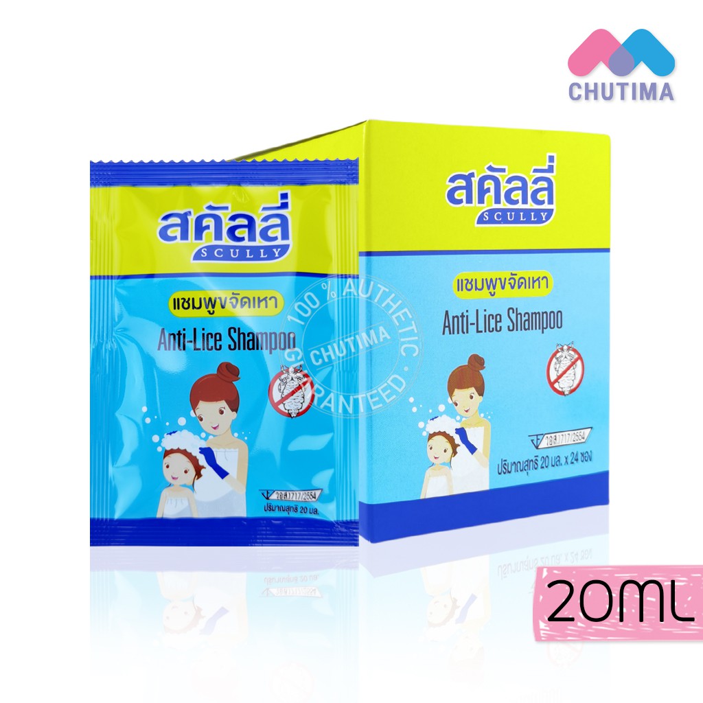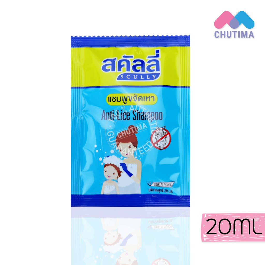 (1 ซอง) สคัลลี่ กำจัดเหา ฆ่าเหา แชมพูฆ่าเหา แชมพูขจัดเหา ปลอดภัย อ่อนโยน scully anti-live shampoo 20 ml.