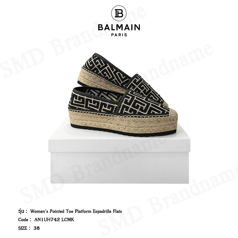Balmain รองเท้าสลิปออนผู้หญิง รุ่น Women's Pointed Toe Platform Espadrille Flats Code: AN1UH742 LCMK