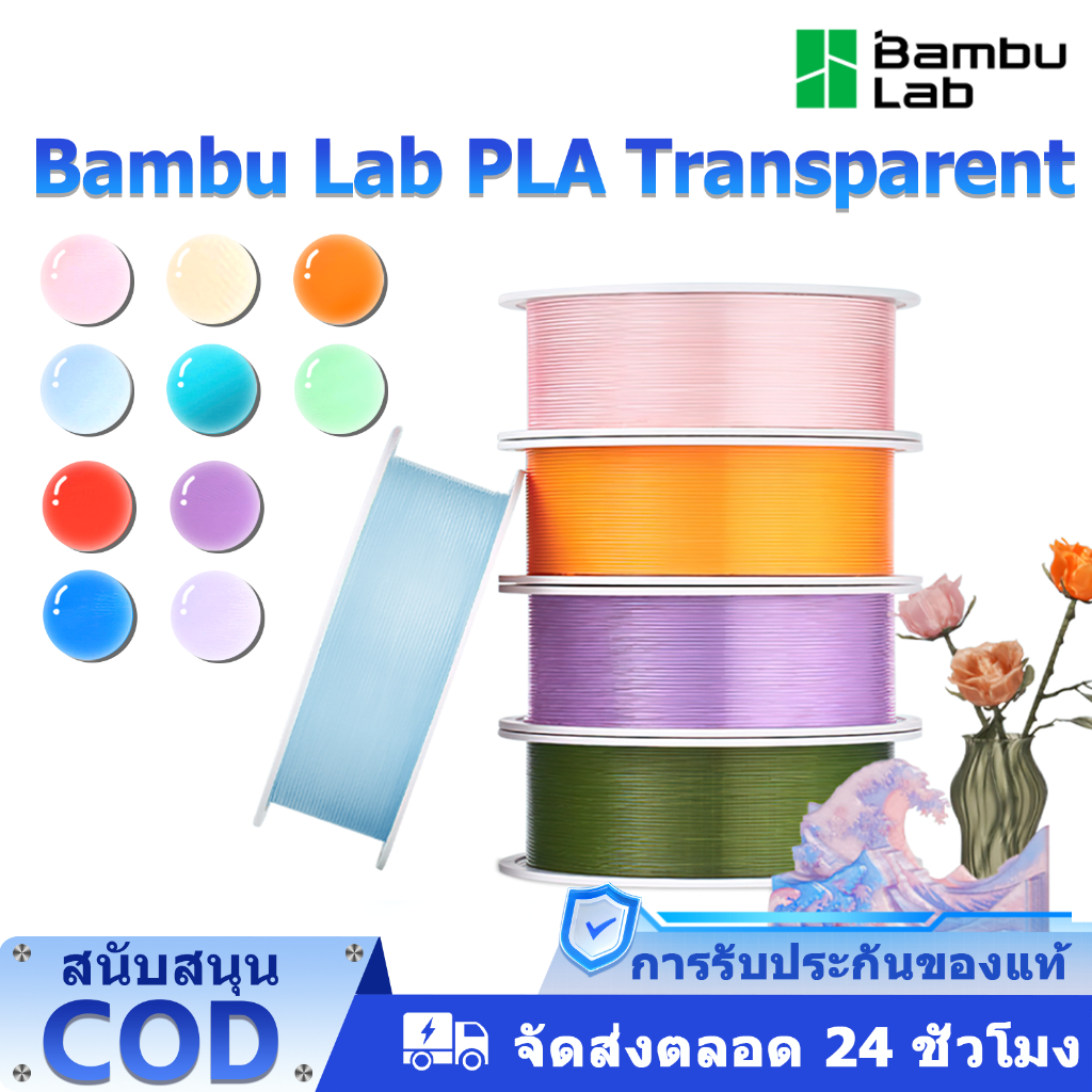 Bambu Lab 3D Printer PLA Translucent Filament Bamboo Lab for A1/A1 Mini/X1/P1 Serie with tray 1.75mm Accuracy +/- 0.03mm with RFID TZPAT