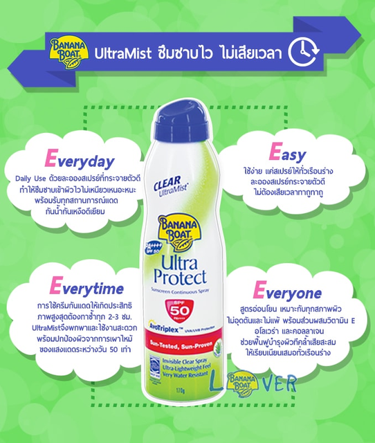 Banana Boat Ultramist Clear Sunscreen Spray SPF50 PA++++ (170 g.) E837N