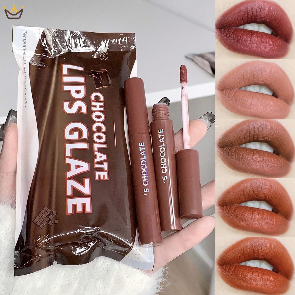ชุดลิปสติกเนื้อแมตต์ 5 สี: ลิปกลอส ที่ได้รับแรงบันดาลใจจากช็อคโกแลต ทนทาน สําหรับทุกสภาพผิว