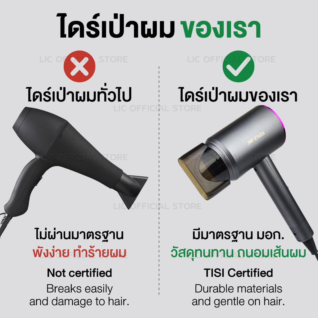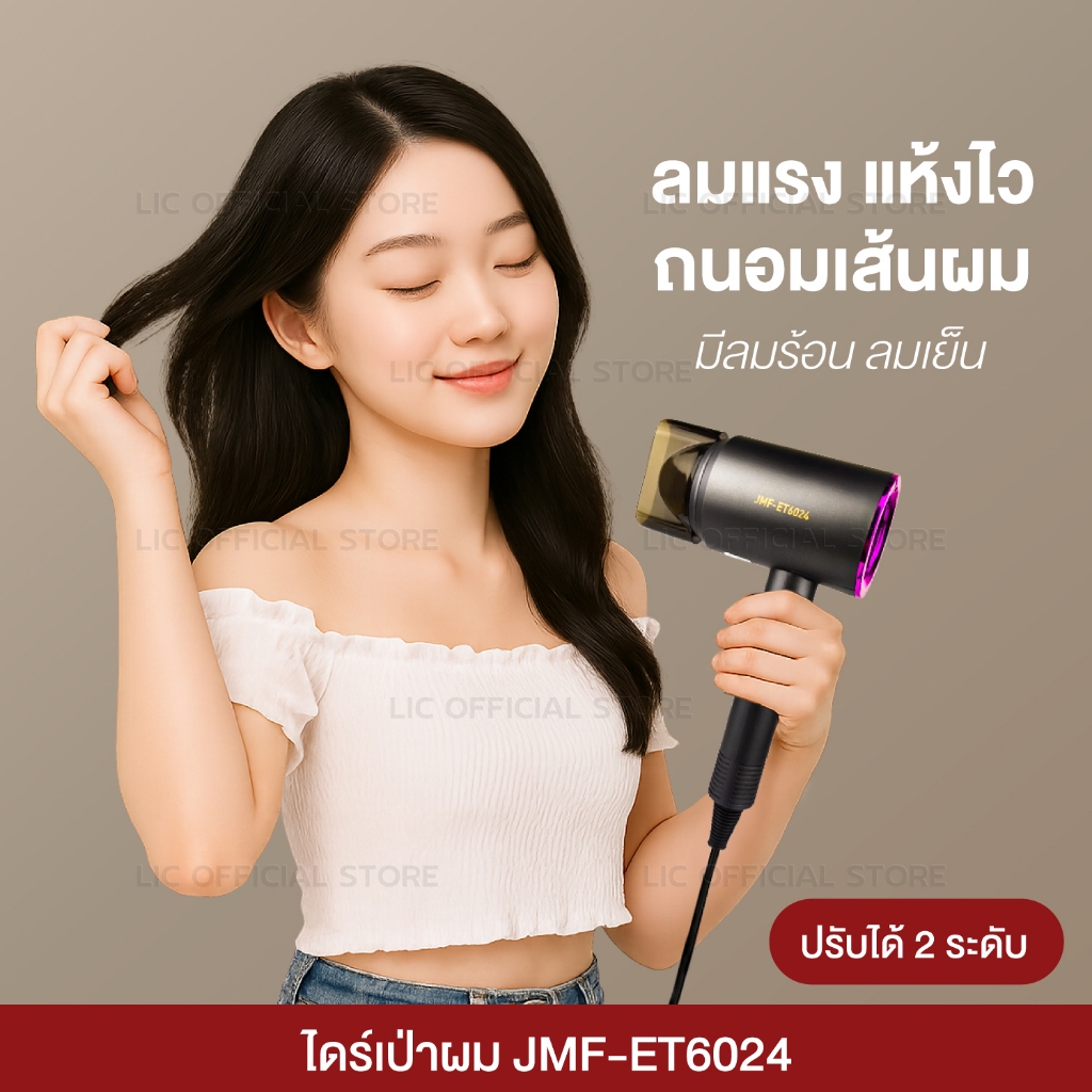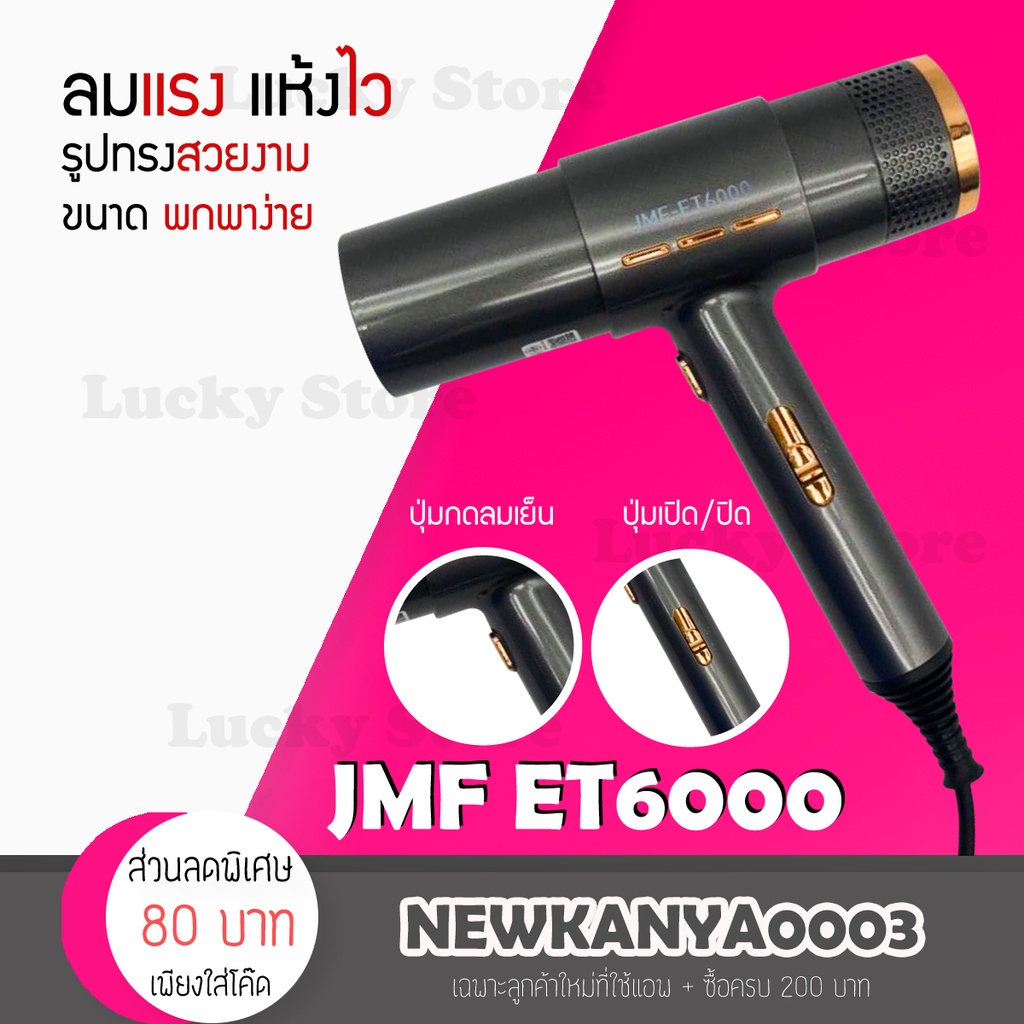 LIC 🔥 พร้อมส่ง 🔥 ไดร์เป่าผม ที่เป่าผม เป่าผม รุ่น JMF ET 6024 / ET 6000 แรง 1200w ปรับความร้อนได้ ลมแรง แห้งไว เป่าผม
