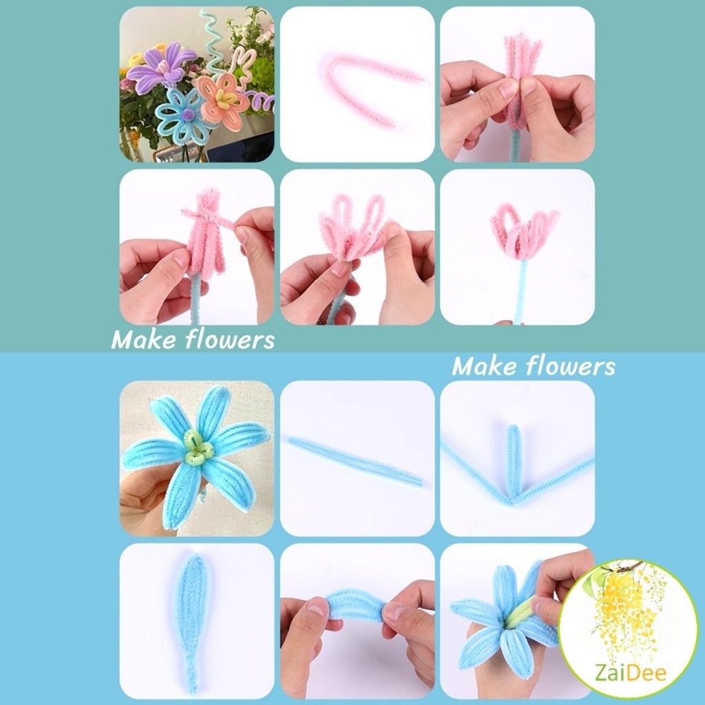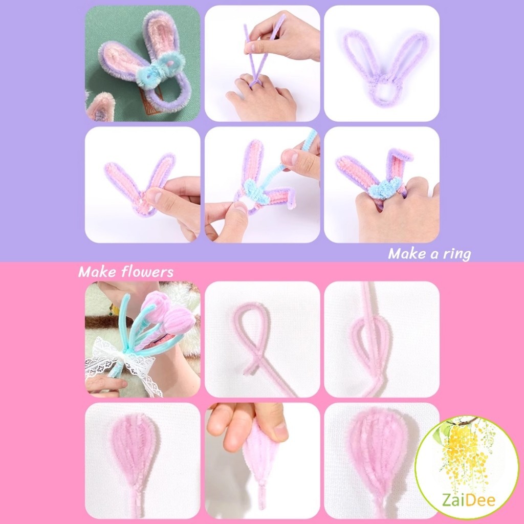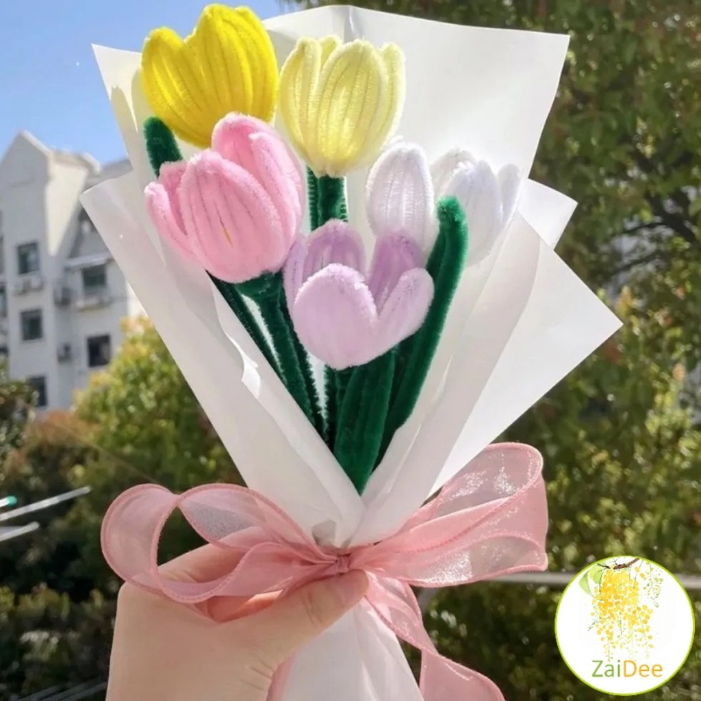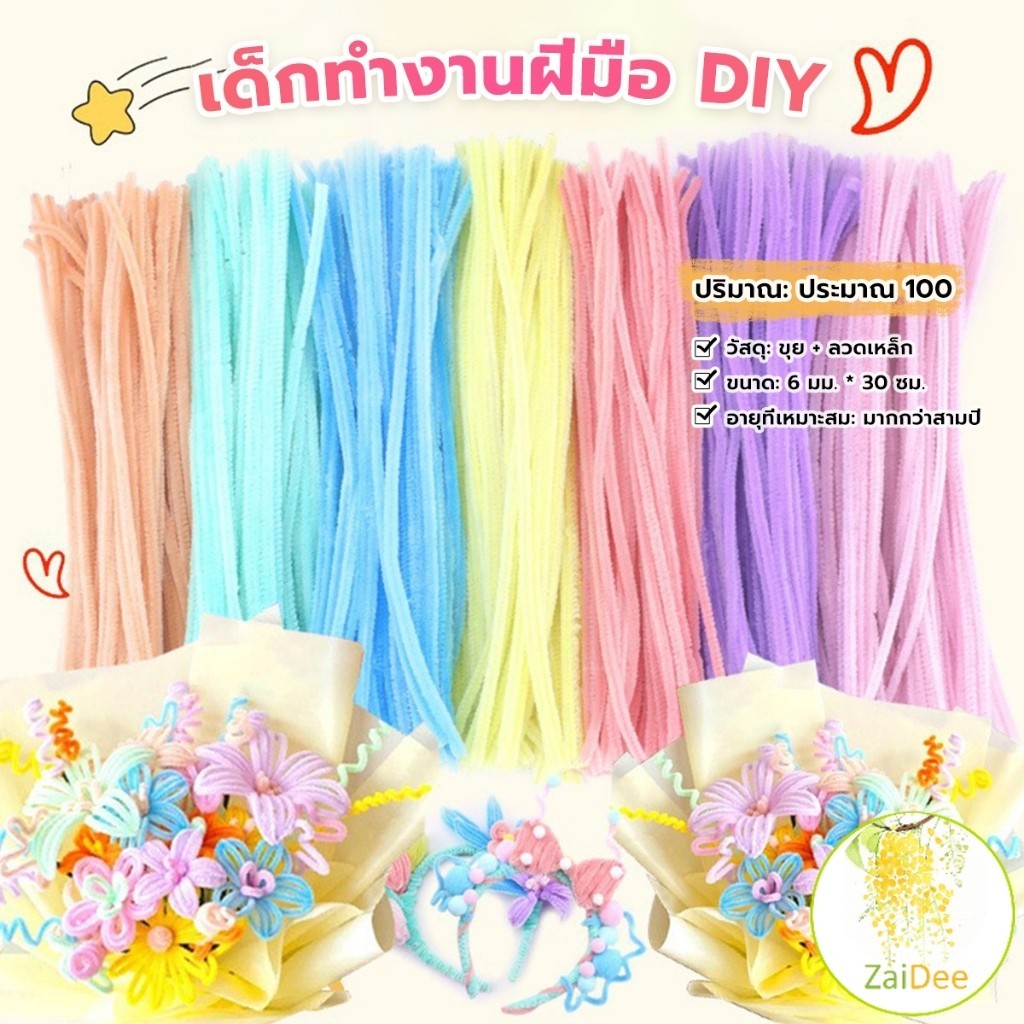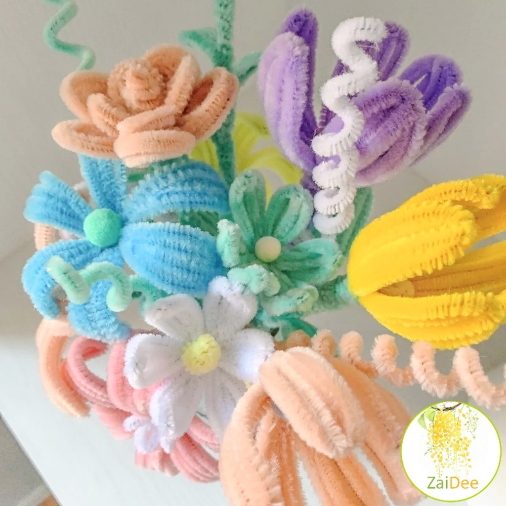 ลวดกำมะหยี่ DIY ช่อดอกไม้วาเลนไทน์ ยาว 30 cm หนา 6mm ทำงานฝีมือ Chenille Stems