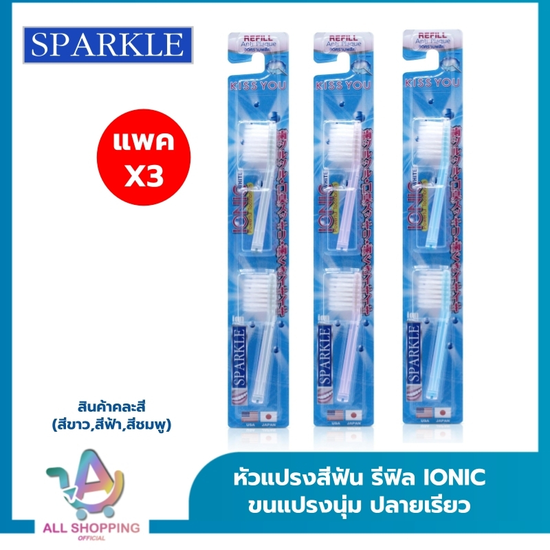 (แพ็ค 3)หัวRefill SPARKLE หัวแปรงสีฟัน IONIC (2ชิ้น/ แพ็ค)สินค้าคละสี ฟ้า ชมพู ขาว IONIC TOOTHBRUSH REFILLไอโอนิคSK0286