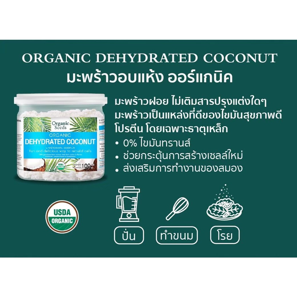 Organic Seeds Dehydrated Coconut มะพร้าวอบแห้ง (100g)