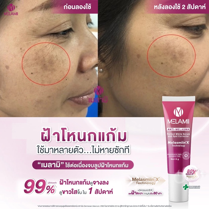 Melamii ครีมทาฝ้า ลดฝ้า Anti-Melasma Perfect White Serum and Spot Corrector (8g./15g.)