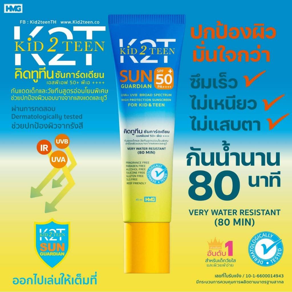 ครีมกันแดดเด็ก KID2TEEN SUN SPF50 PA++++ FOR KIDS & TEEN กันน้ำ 80 นาที สำหรับเด็กและวัยทีน